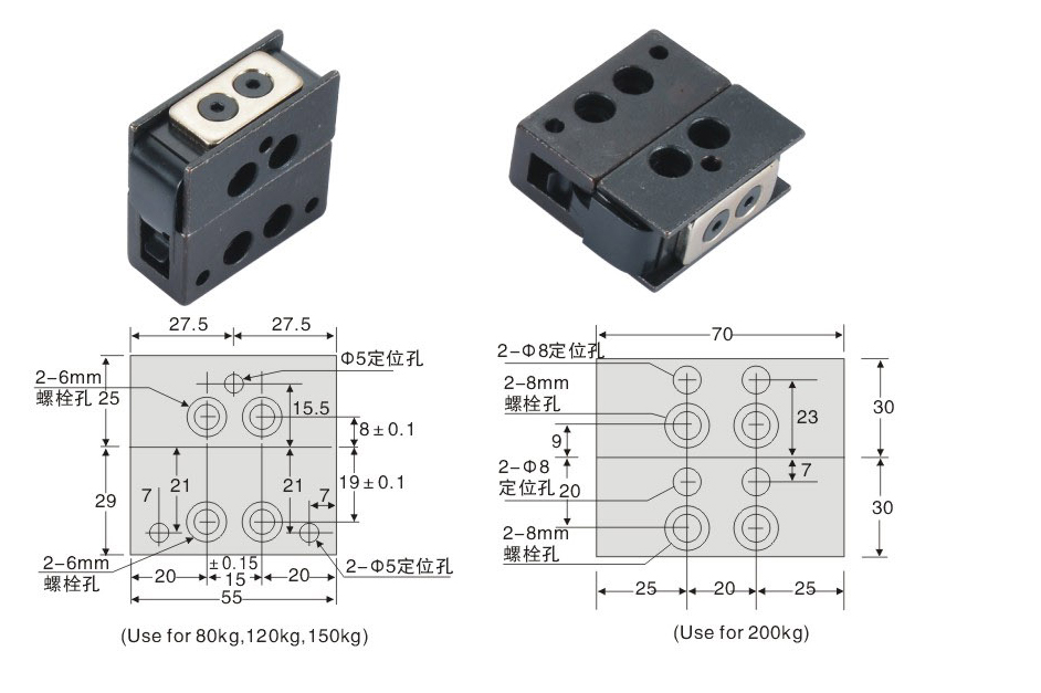 4.本裝置尺寸有二型, 但扣模力分爲(wèi)四種, 如下: