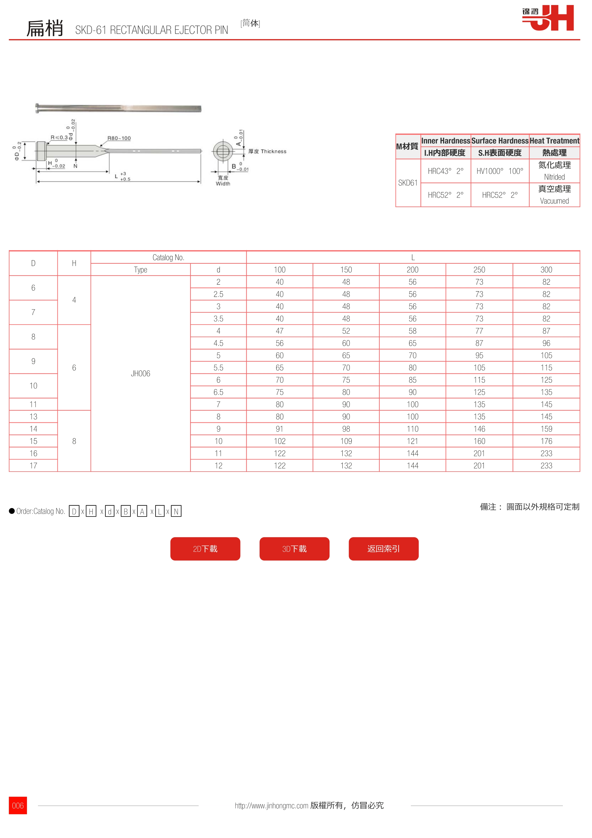 HRC52°±2° | HRC52°±2° | 真空處理 Vacuumed |
