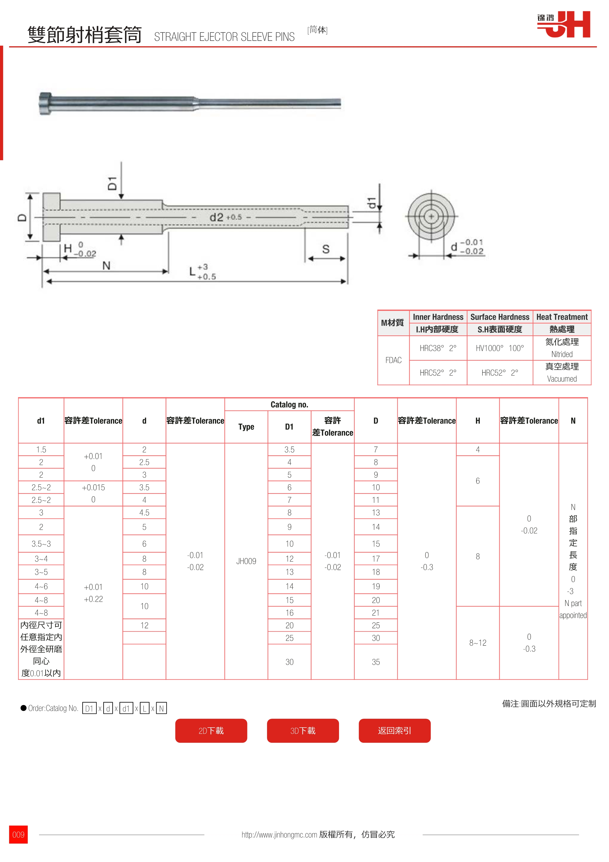 1.5 | +0.01 0 | 2 | -0.01 -0.02 | JH009 | 3.5 | -0.01 -0.02 | 7 | 0 -0.3 | 4 | 0 -0.02 | N 部 指 定 長(zhǎng) 度 0 -3 N part appointed |
