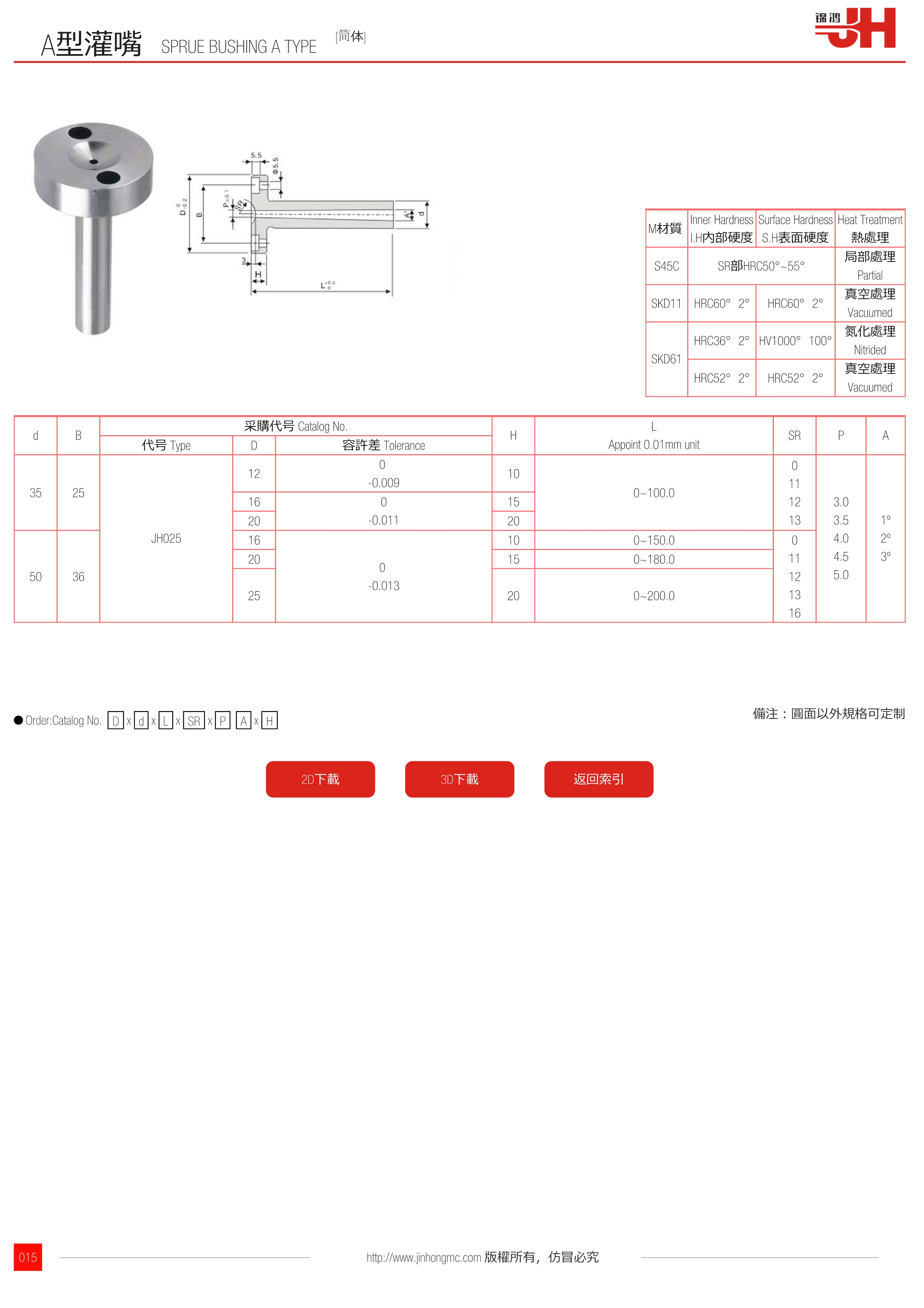 35 | 25 | JH025 | 12 | 0 -0.009 | 10 | 0~100.0 | 0 11 12 13 | 3.0 3.5 4.0 4.5 5.0 | 1o 2o 3o |