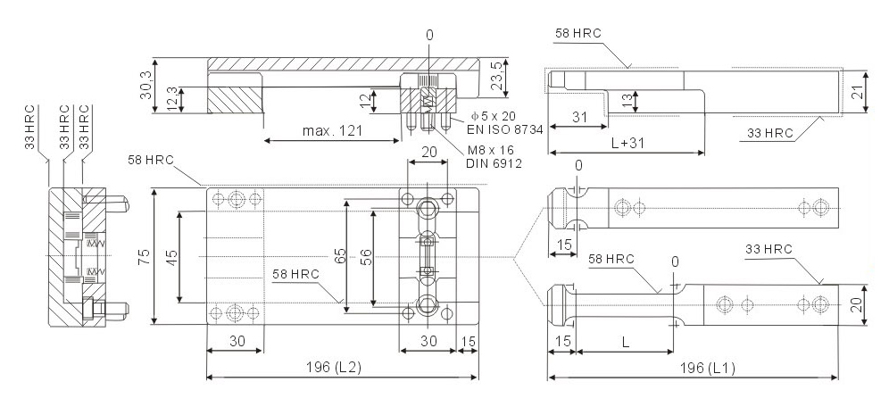 ※ Precautions: lt is required to calculate the same stroke for symmetrical installation during die processing. Otherwise, it will cause unbalance force of single set of modelocking buckle and breakage of component.