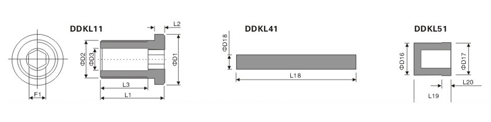 型號 | 尺寸 | D1 | D2 | D3 | L1 | L2 | L3 | F1 | 型號 | 尺寸 | D15 | L18 | 型號 | 尺寸 | D16 | D17 | L19 | L20 |