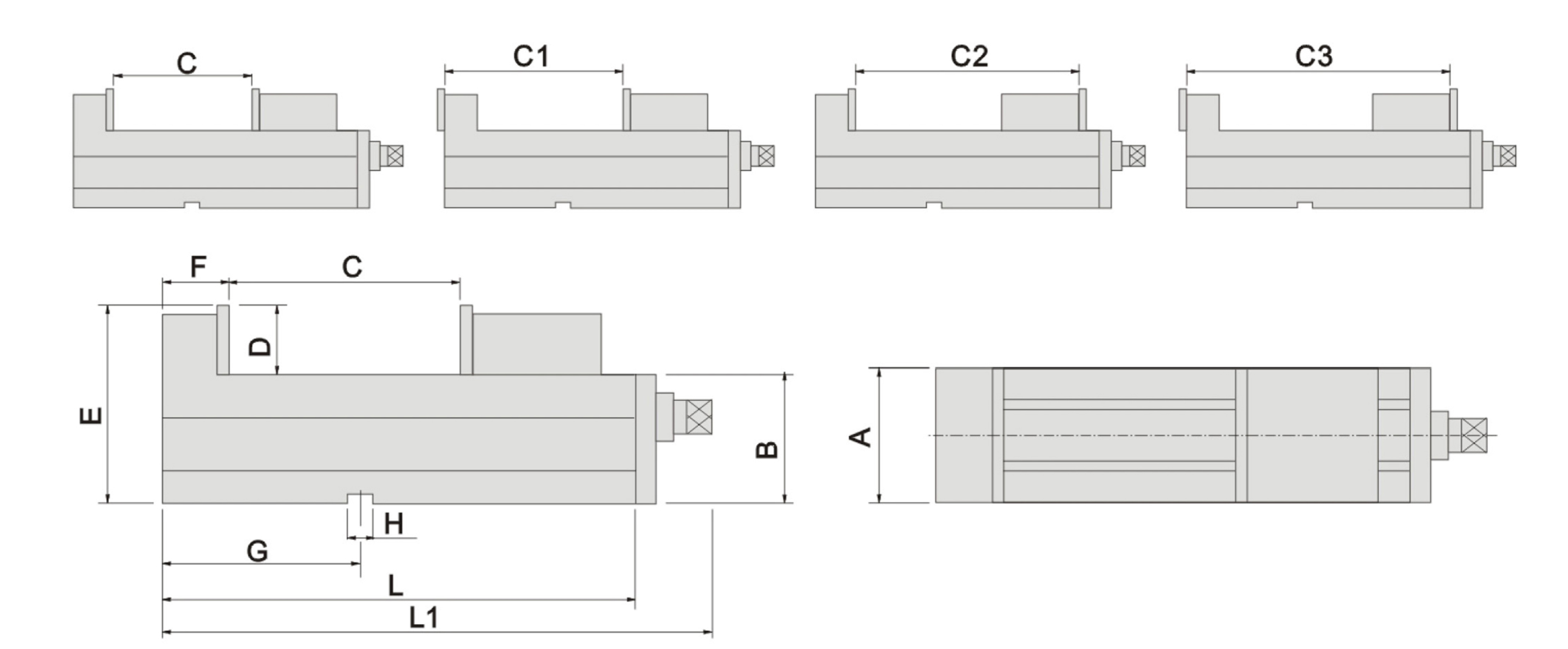 訂購(gòu)編號(hào) | 型號(hào) | A | B | 夾持範(fàn)圍 | D | E | F | G | H | L | L1 | 夾持力 | 重量 | |||