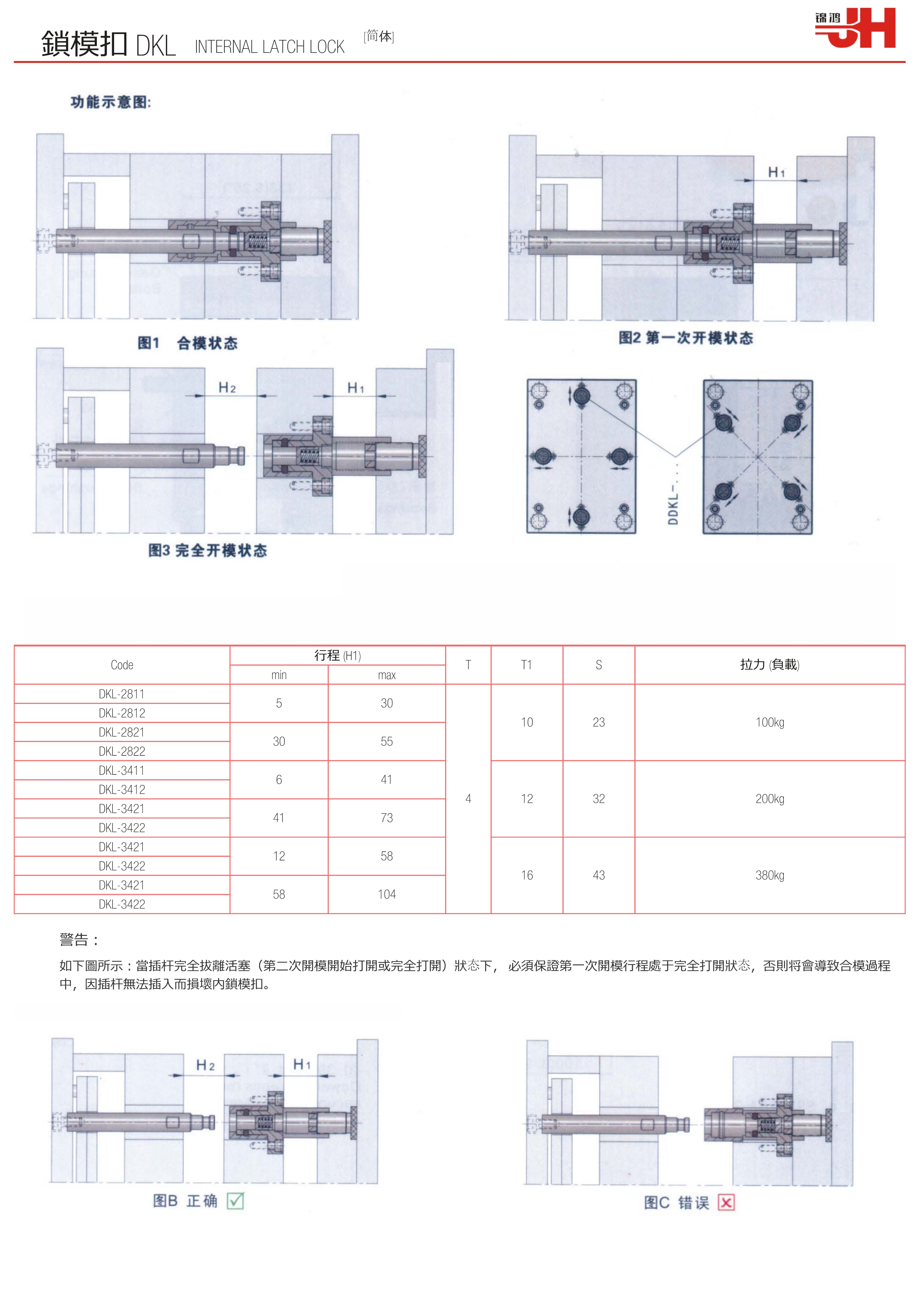 Code | 行程 (H1) | T | T1 | S | 拉力 (負(fù)載) | |