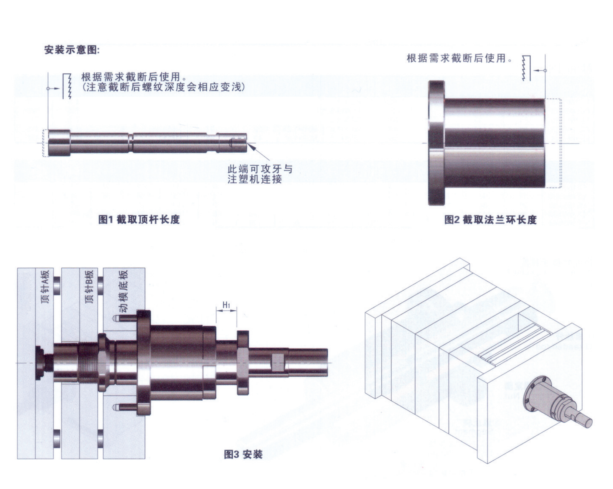 精確計算頂出行程,根據(jù)需求截取法蘭環(huán)、頂桿長度,注意安裝完成后頂出行程不可調(diào)節(jié);