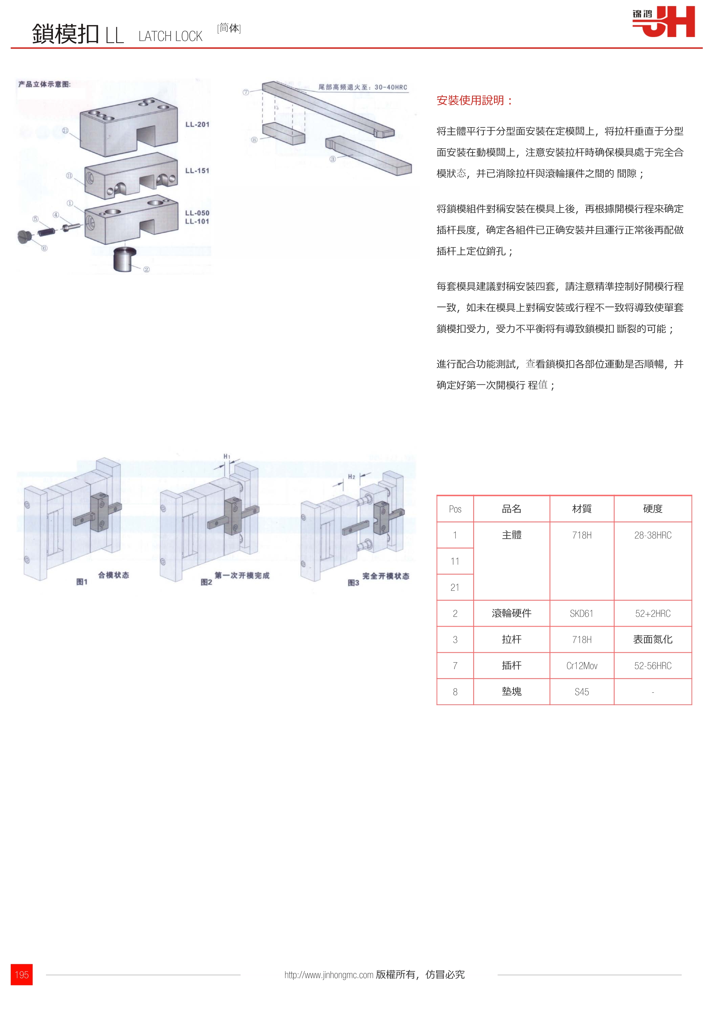 每套模具建議對稱安裝四套,請注意精準控制好開模行程一致,如未在模具上對稱安裝或行程不一致將導致使單套鎖模扣受力,受力不平衡將有導致鎖??蹟嗔训目赡埽?/p>