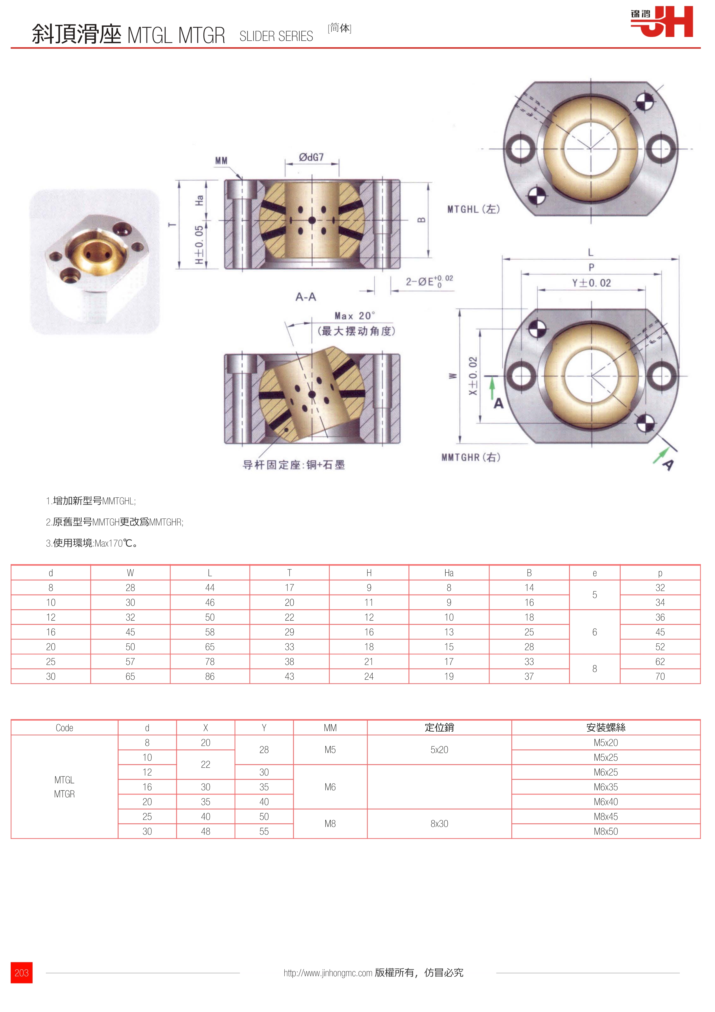 訂購(gòu):斜頂滑座 MTGL MTGR