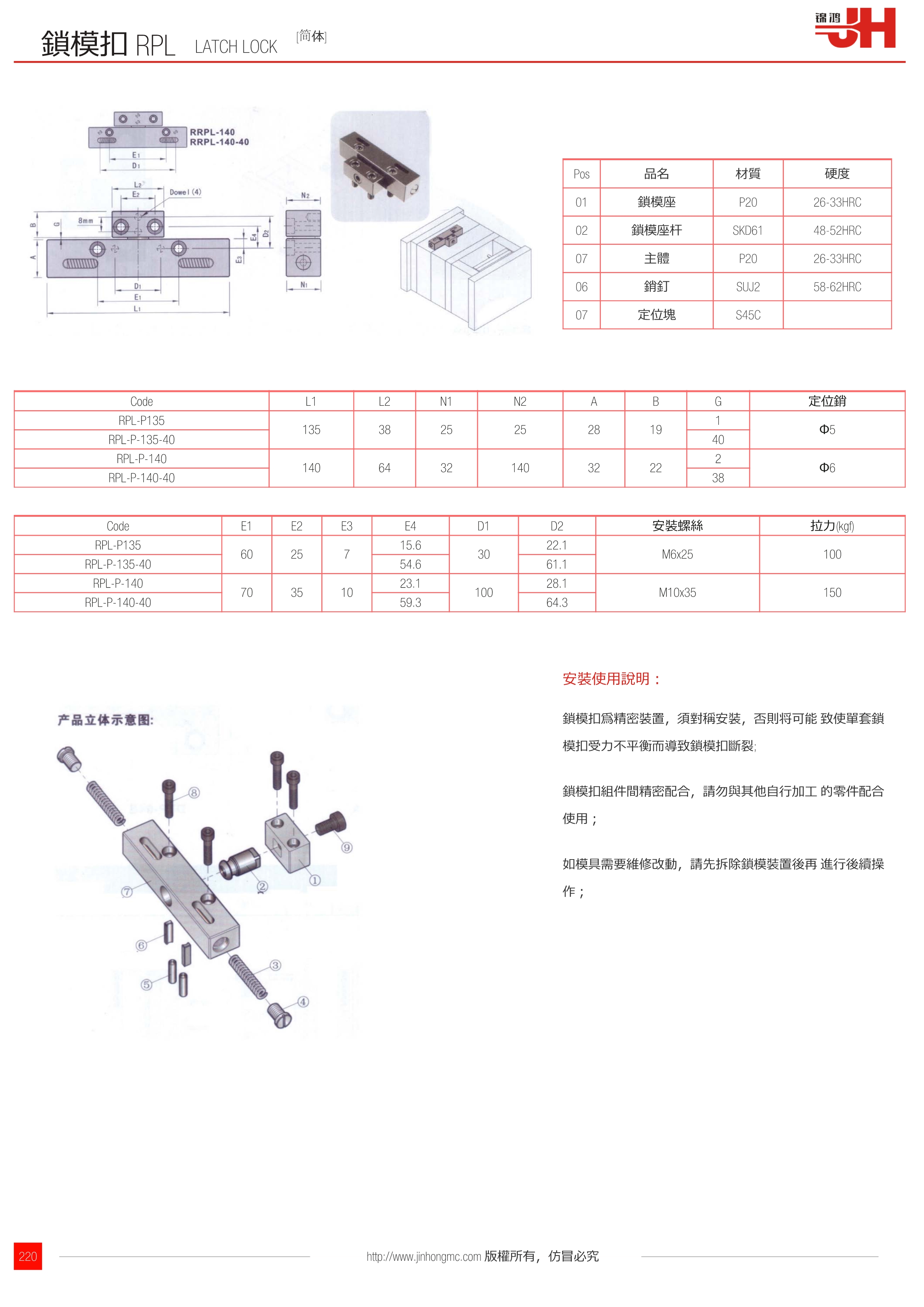 鎖??劢M件間精密配合,請勿與其他自行加工 的零件配合使用;