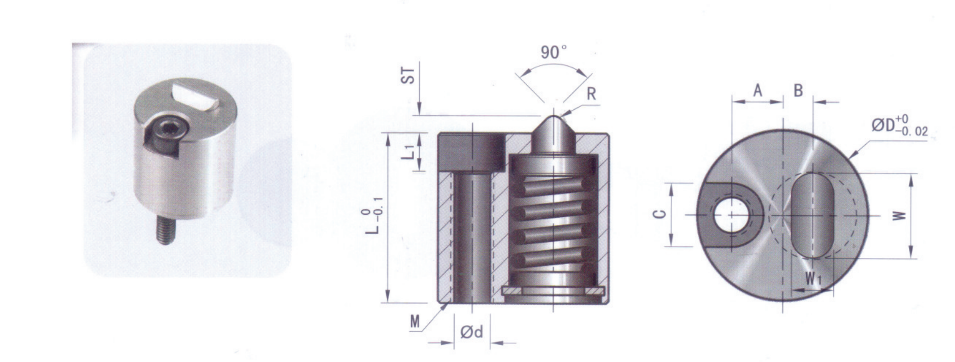 Code | D | ST | L | L1 | A | B | C | D | W | W1 | R | 安裝螺絲 | 荷重(Kgf) |