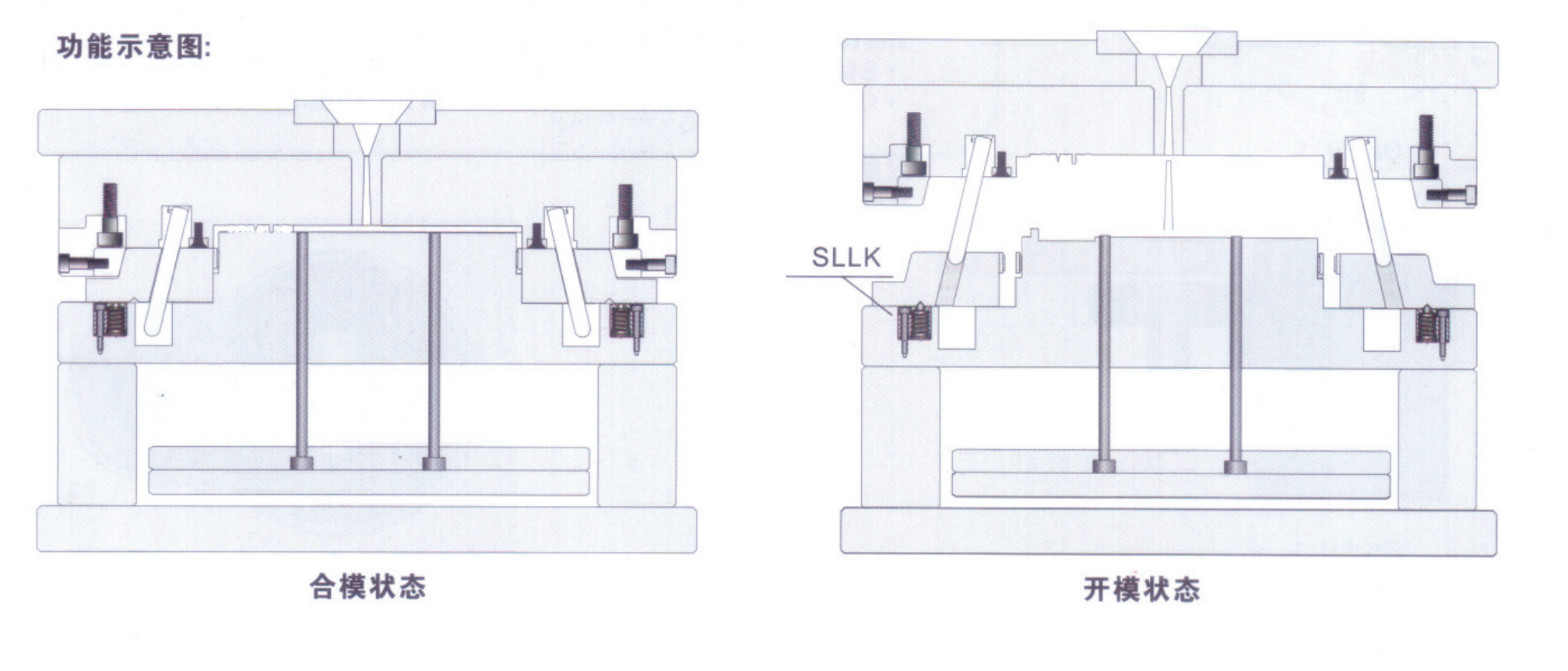 2.采用面接觸設(shè)計,降低了接觸面的單位壓強,從而有效防止行位機構(gòu)損傷。
