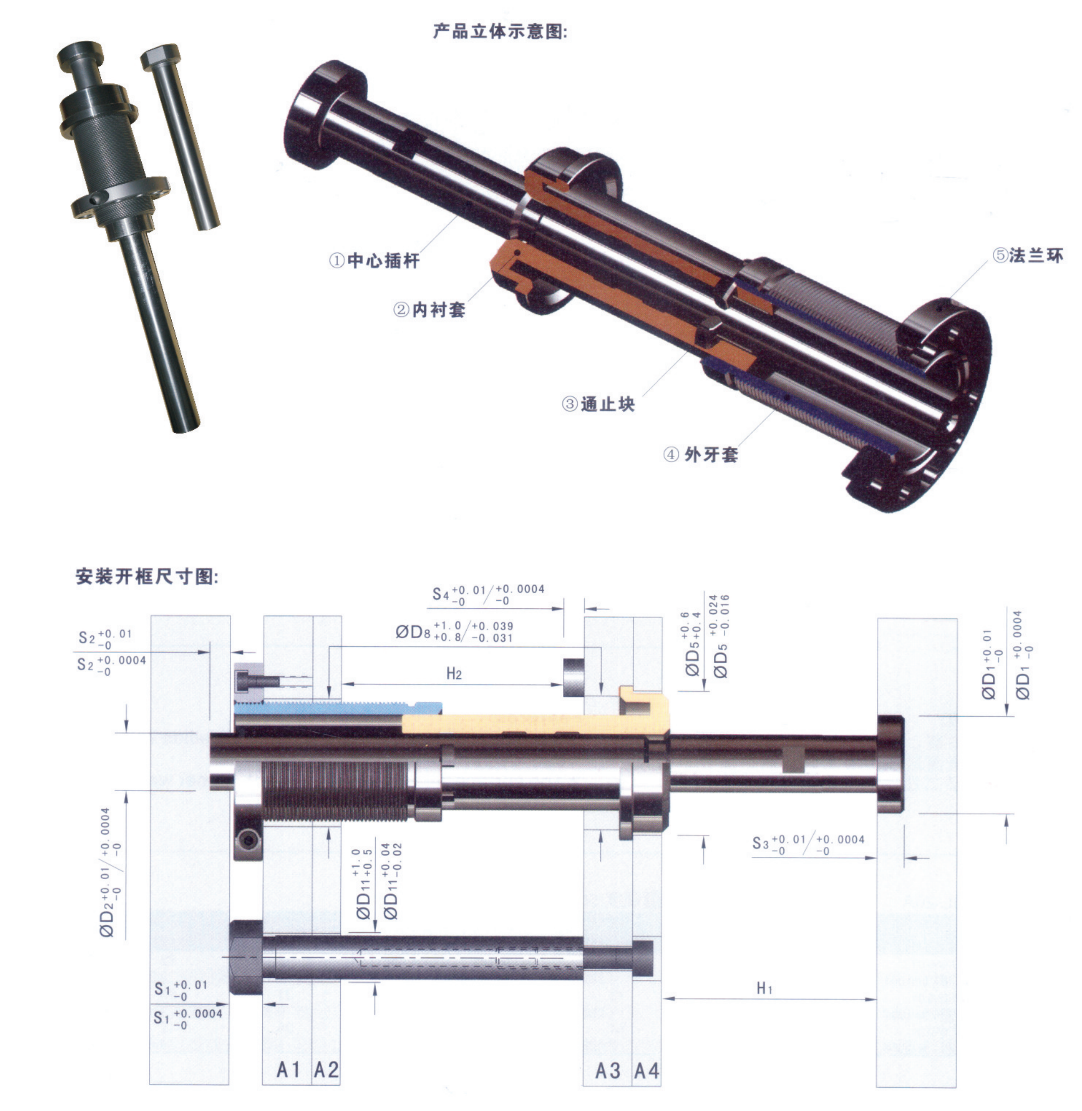 注意安裝前需計算精準,安裝完成后頂出行不可調節(jié),可在安裝前從中心插桿小徑 端截取長度來控制行程;