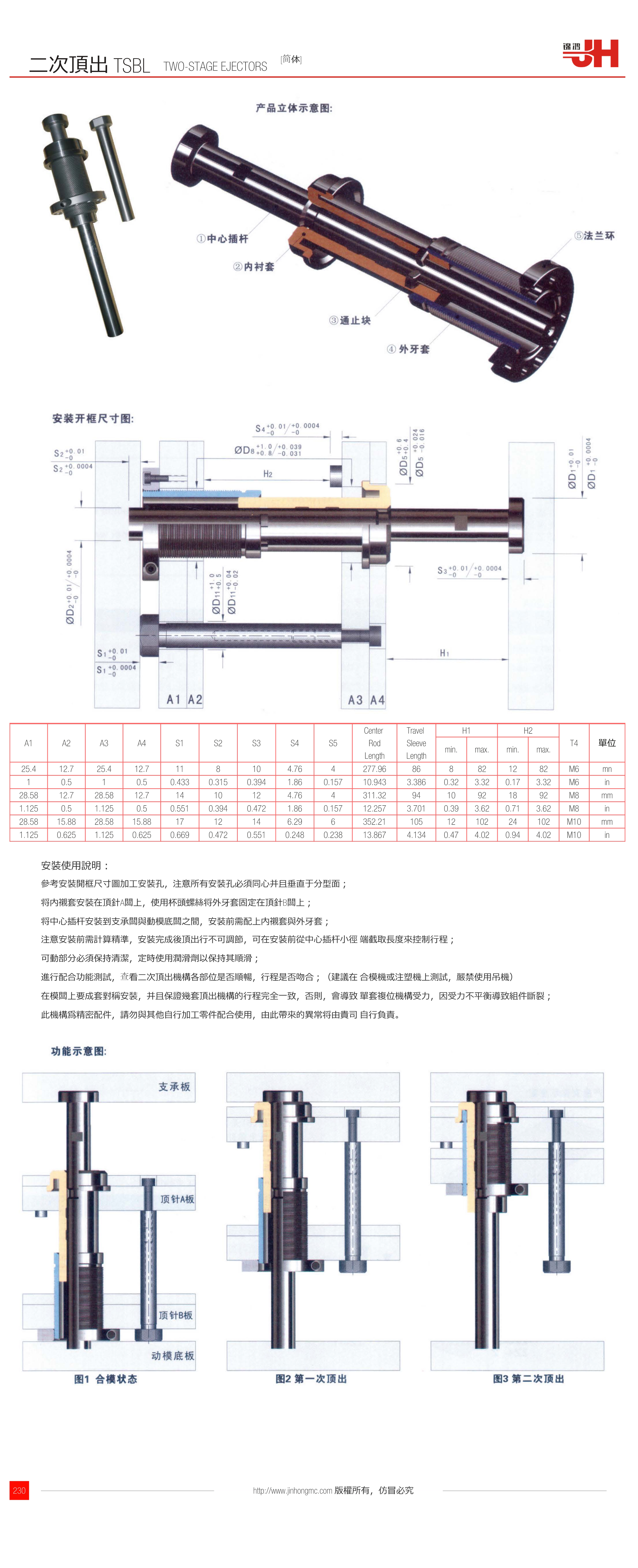 A1 | A2 | A3 | A4 | S1 | S2 | S3 | S4 | S5 | Center Rod Length | Travel Sleeve Length | H1 | H2 | T4 | 單位 | ||