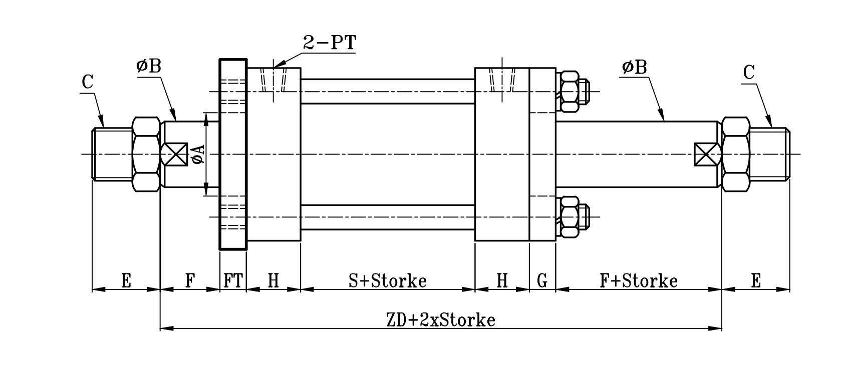 缸徑 BORE | ΦA | ΦB | C | E | F | G | H | N | P | P1 | PT | S | Z | ZD | ΦFD | FT | FR | FX | FY | FZ |