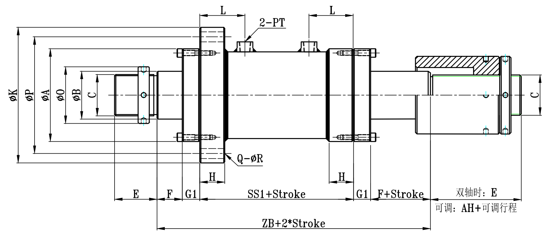缸徑 BORE | ΦA(chǔ) | ΦB | C | L | H | ΦI | ΦK | ΦP | Φ0 | E | F | G1 | SS | SS1 | ZA | ZB | AH | Q | ΦR | PT |