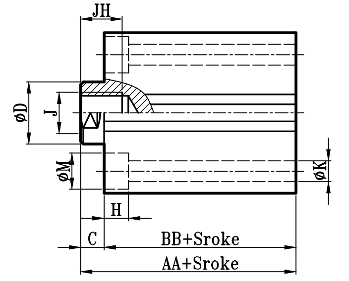 缸徑 BORE | AA | BB | C | ΦD | E | F | EA | FA | EB | LH | Q | FB | ΦK | ΦK1 | KA | KW | ΦM | H | Y | X | S | R0 | J | JH | 0 | OL | W | ΦV |