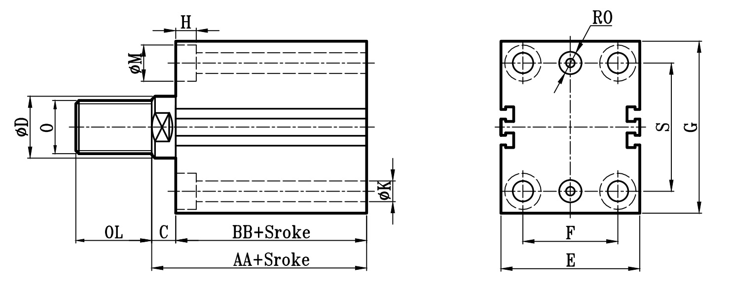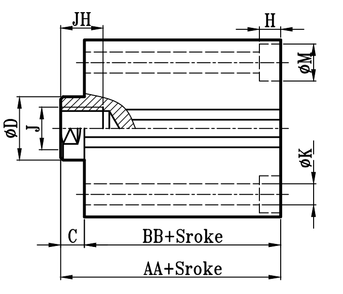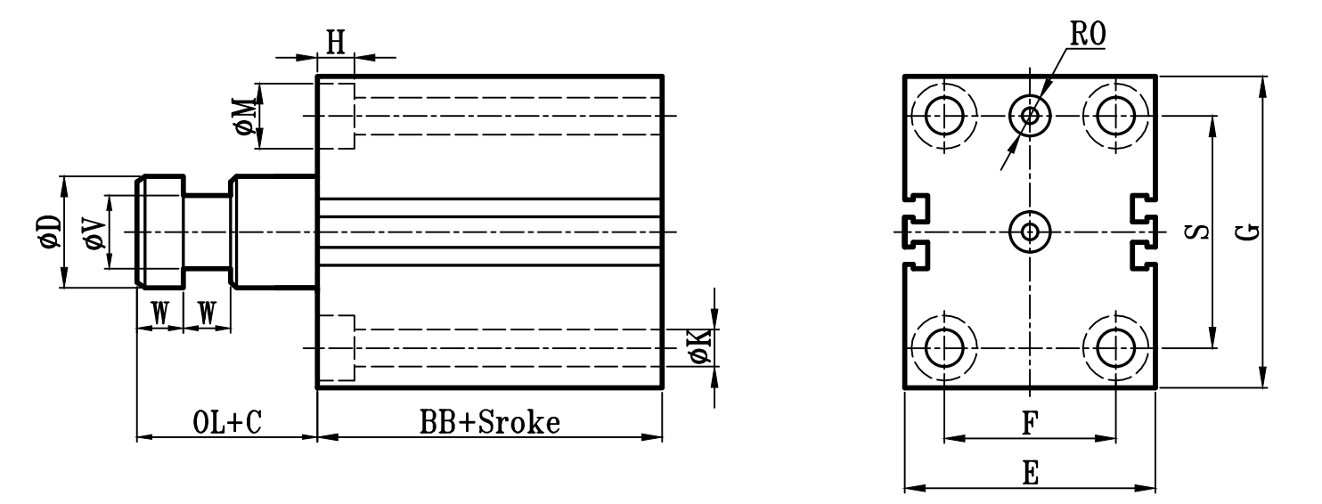 缸徑 BORE | AA | BB | C | ΦD | E | F | S | G | ΦK | ΦM | H | R0 | J | JH | 0 | 0L | W | ΦV |