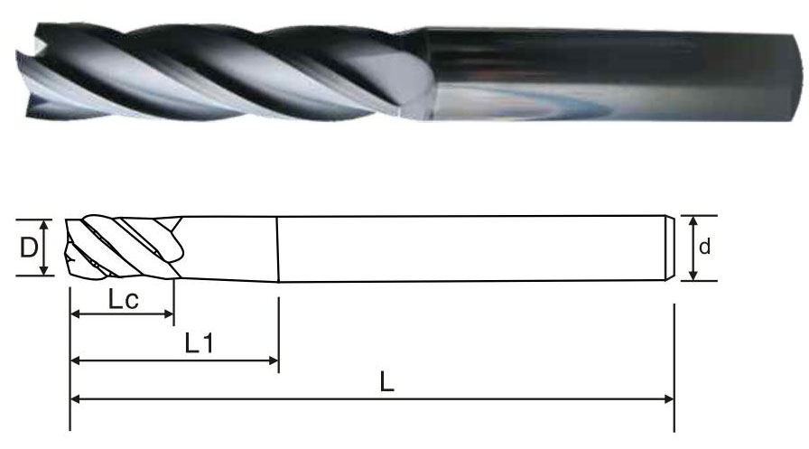 商品編號(hào) Product number | 刃徑(D) Blade diameter | 刃長(Lc) Blade length | 有效長(L1) Effective long | 柄徑(d) Shank diameter | 全長(L) Overall length | 刃數(shù) Flute |