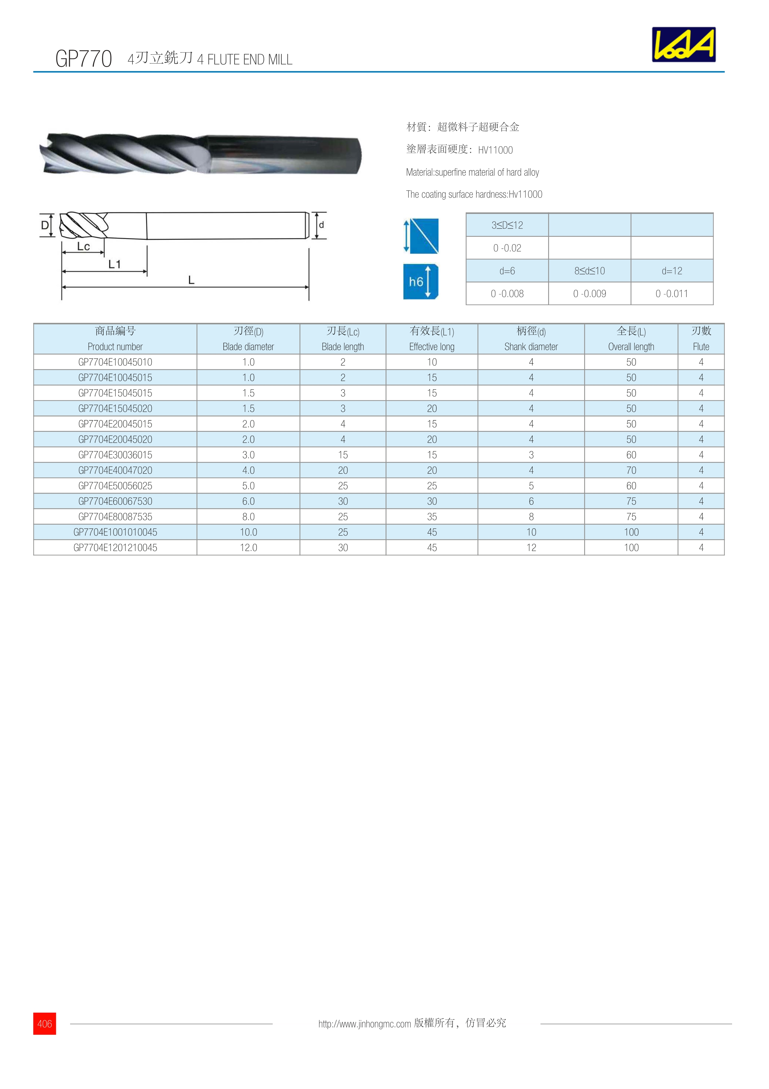 訂購:gp770-2 4刃立銑刀