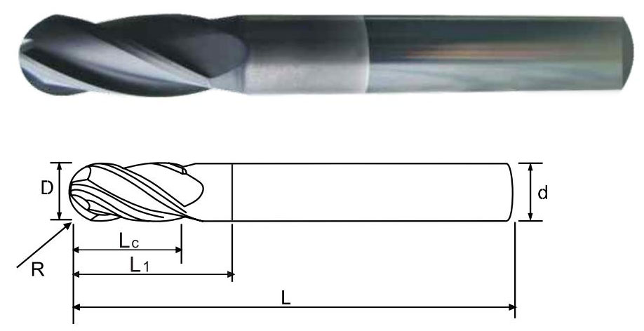 商品編號 Product number | 半徑(R) Radius of R | 刃徑(D) Blade diameter | 刃長(Lc) Blade length | 有效長(L1) Effective long | 柄徑(d) Shank diameter | 全長(L) Overall length | 刃數 Flute |