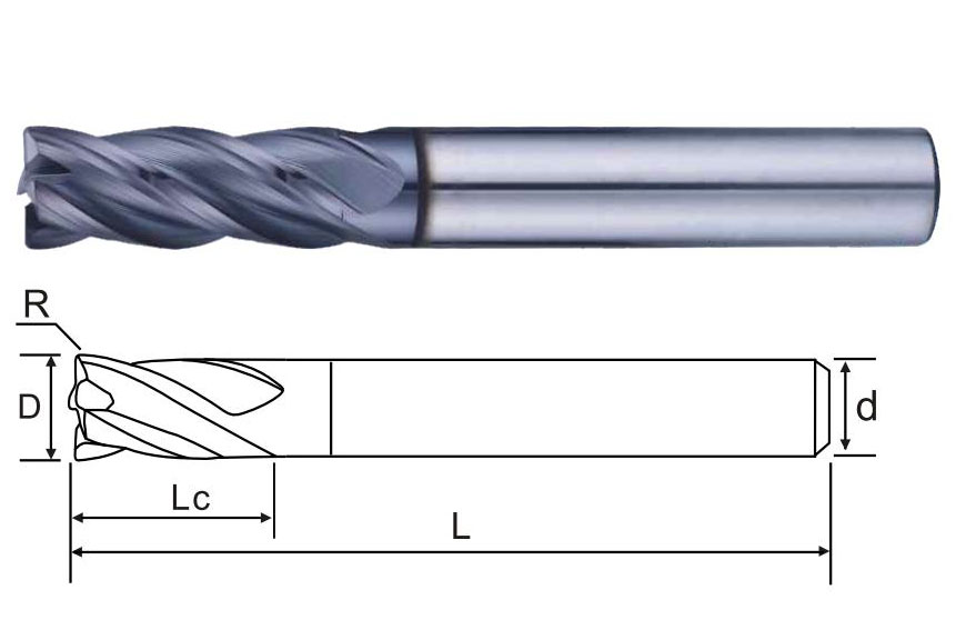 商品編號(hào) Product number | 刃徑(D) Blade diameter | R角 R angle | 刃長(zhǎng)(Lc) Blade length | 柄徑(d) Shank diameter | 全長(zhǎng)(L) Overall length | 刃數(shù) Flute |