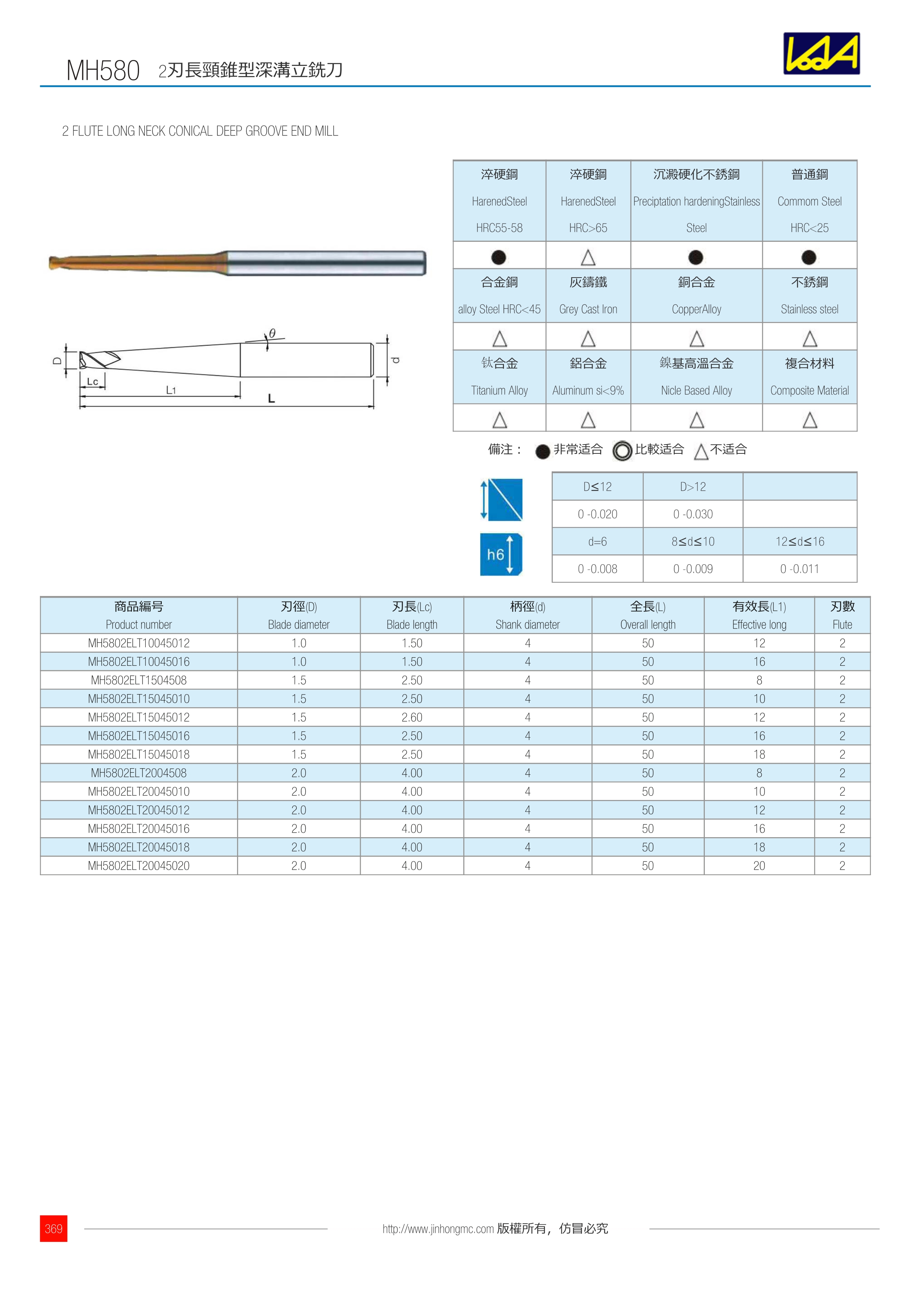 訂購(gòu):mh580-11 2刃長(zhǎng)頸錐型深溝立銑刀