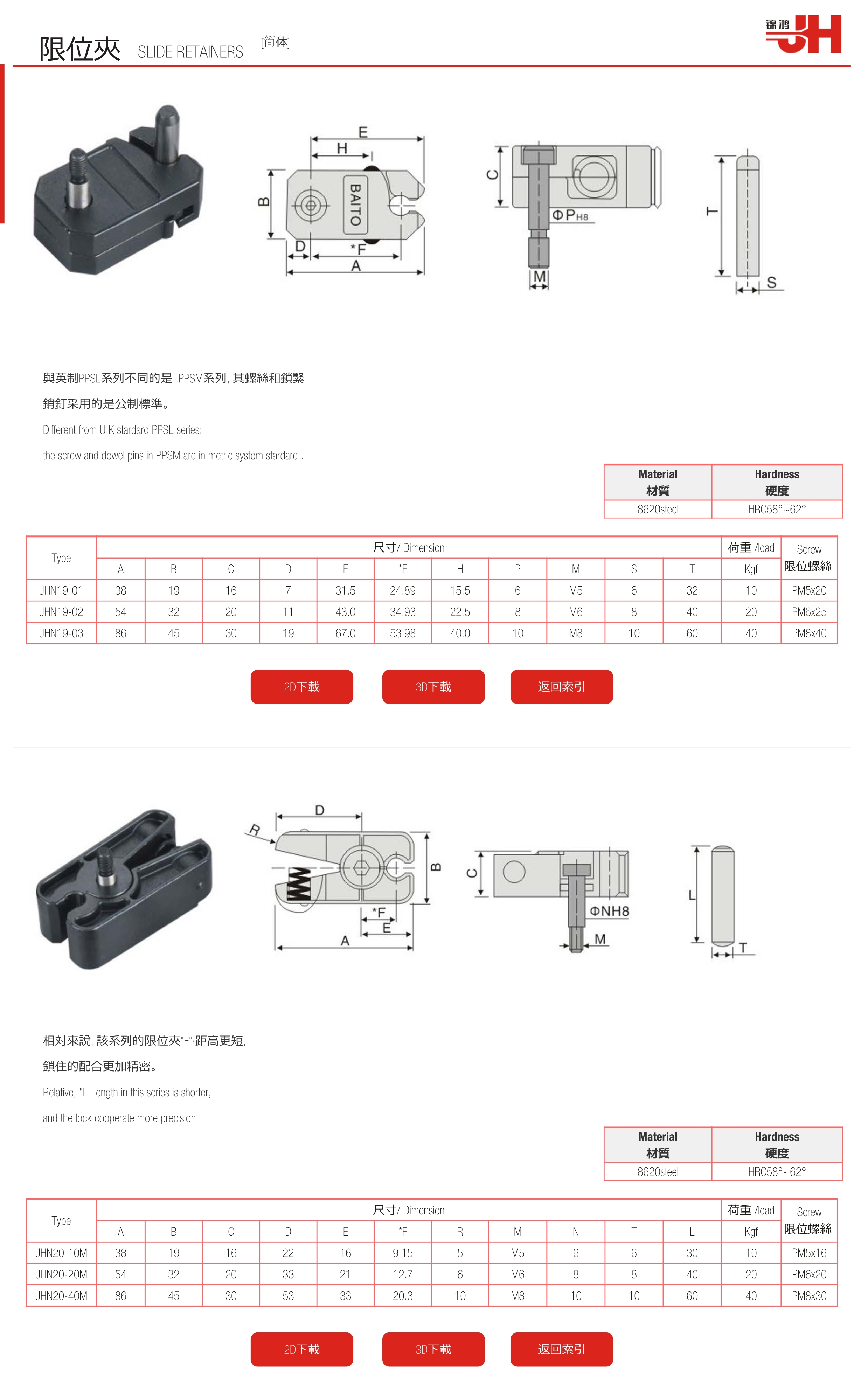 與英制PPSL系列不同的是: PPSM系列, 其螺絲和鎖緊