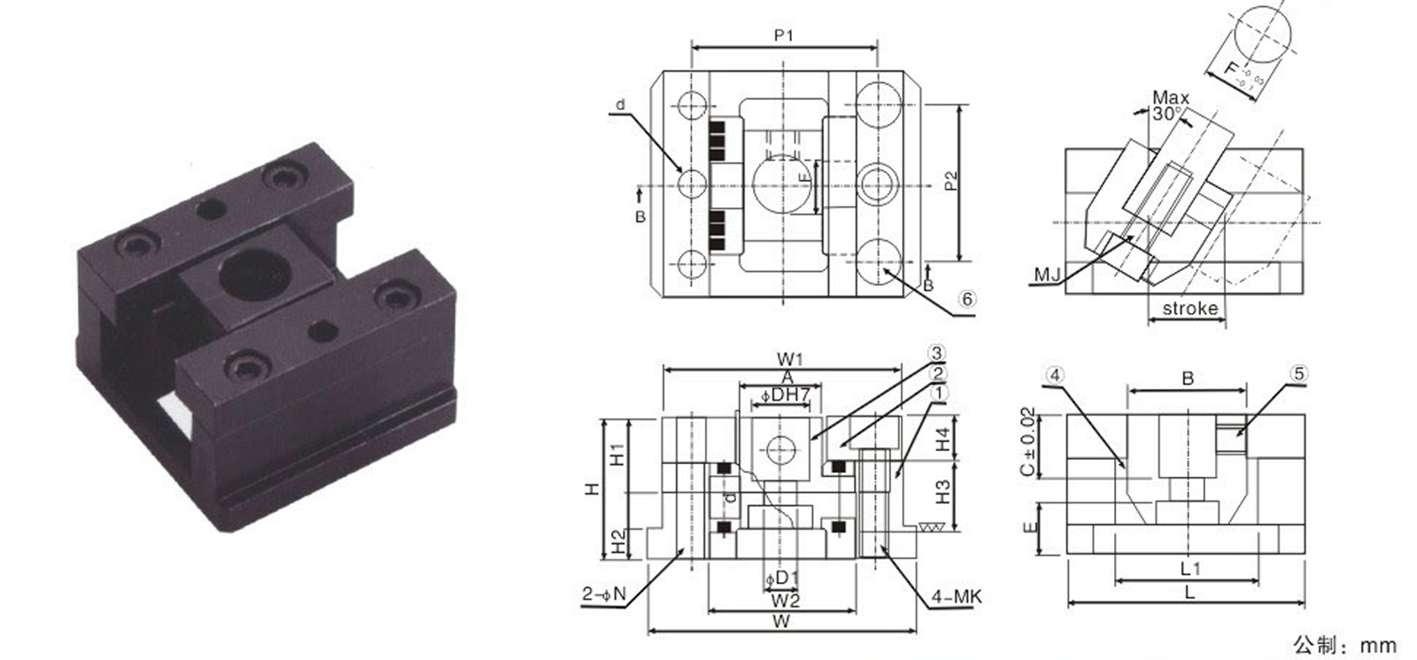 Type.NO | D | d | D1 | A | B | C | E | F | MJ | H | H1 | H2 | H3 | H4 | L | L1 | W | W1 | W2 | P1 | P2 | MK | ΦN | Stroke |