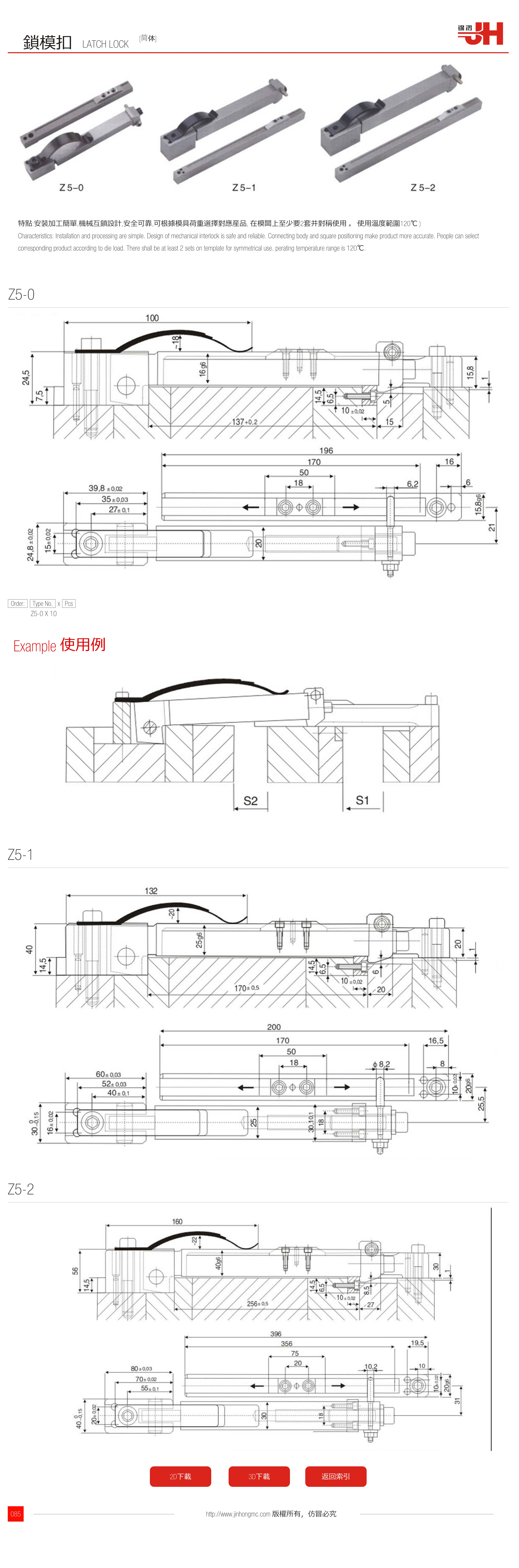 特點(diǎn):安裝加工簡(jiǎn)單,機(jī)械互鎖設(shè)計(jì),安全可靠,可根據(jù)模具荷重選擇對(duì)應(yīng)産品,