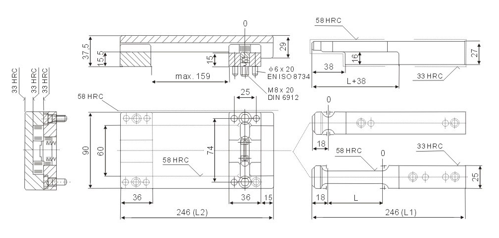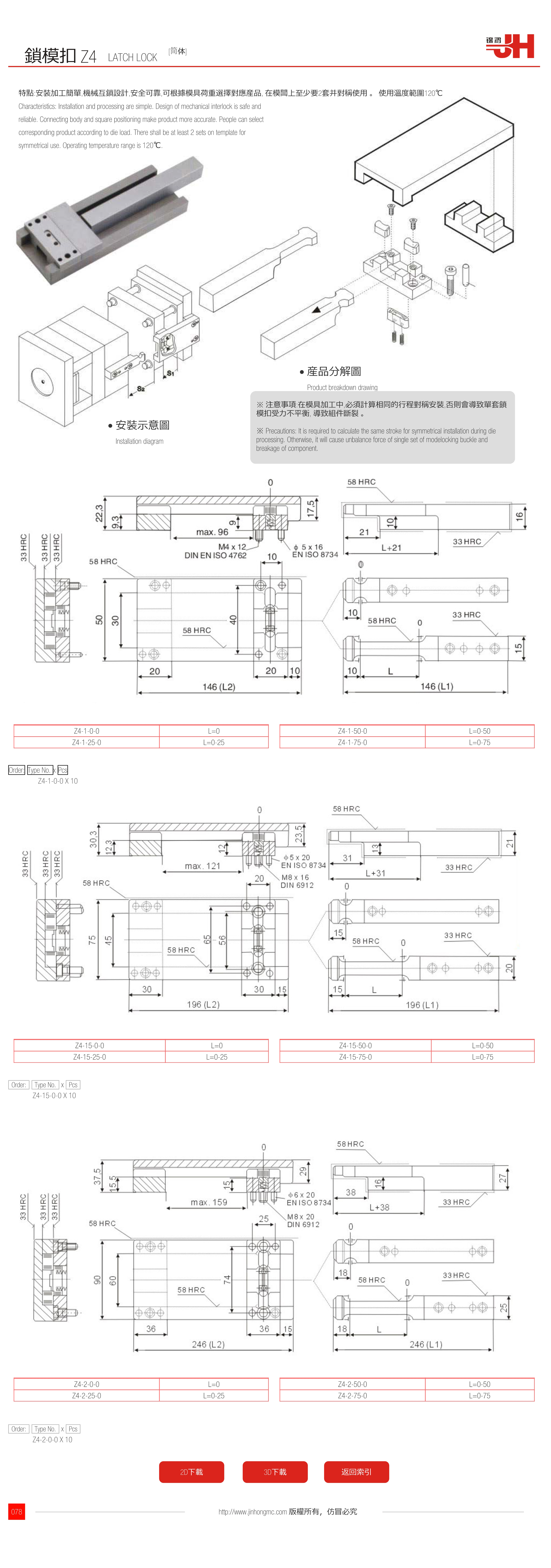 ※ Precautions: lt is required to calculate the same stroke for symmetrical installation during die processing. Otherwise, it will cause unbalance force of single set of modelocking buckle and breakage of component.