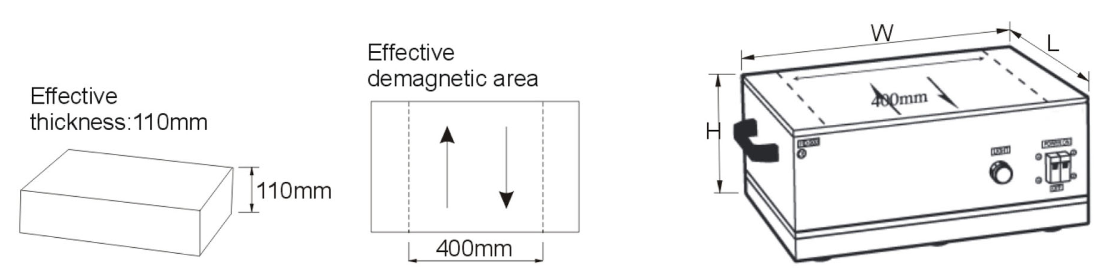 脫磁有效範(fàn)圍400mm(16”),脫磁工件有效厚度110mm
