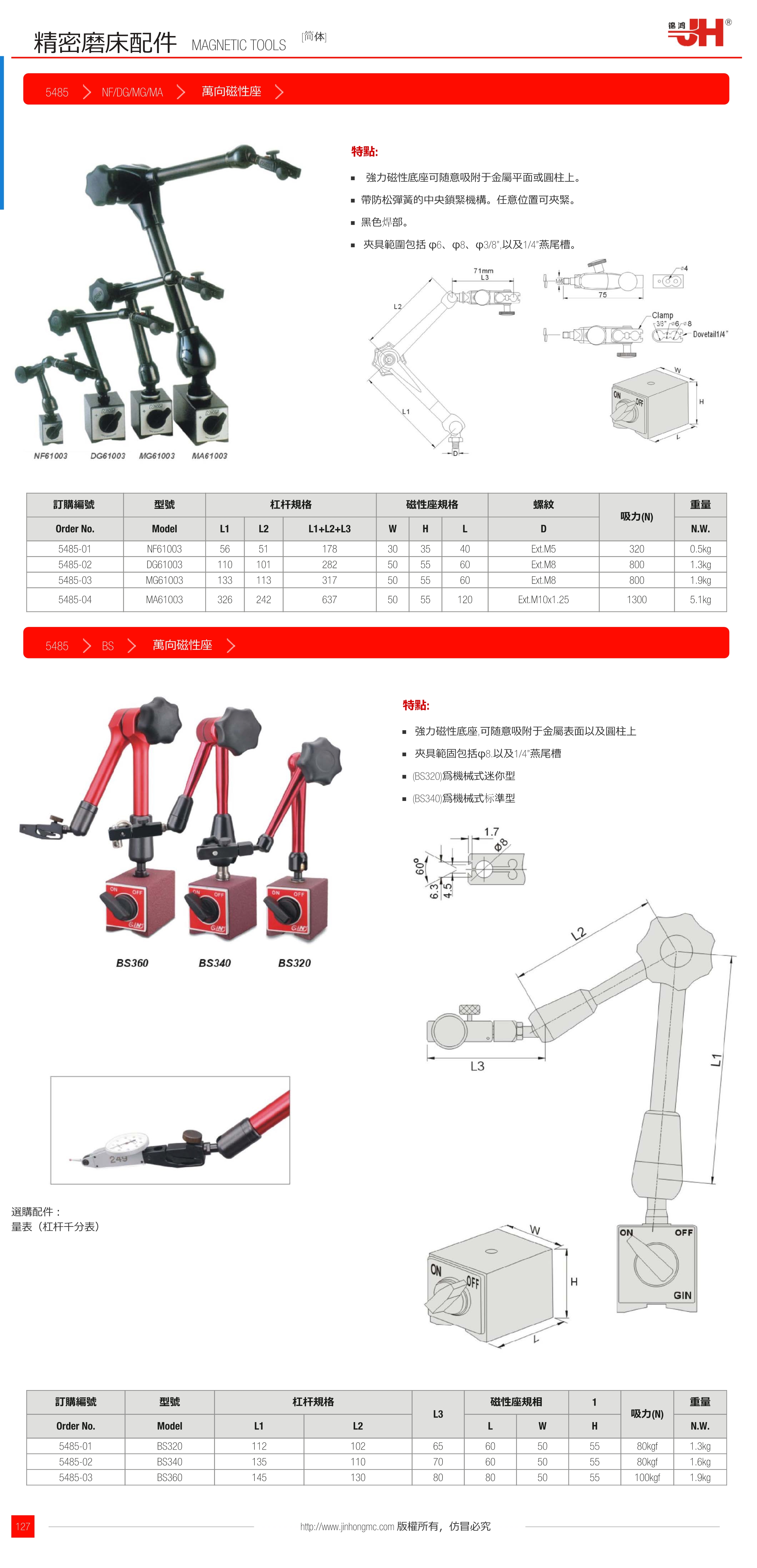 訂購:萬向磁性座 NF/DG/MG/MA 5485