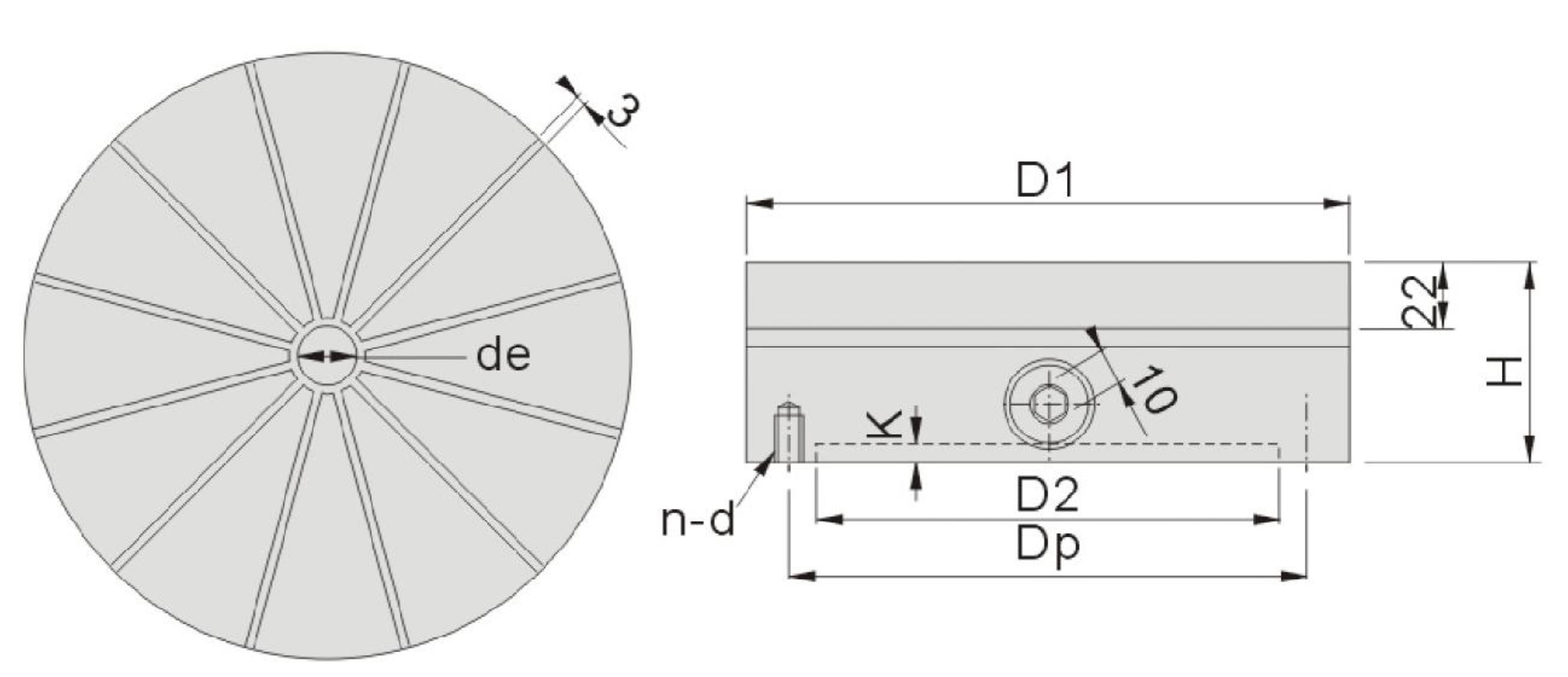 Order No. | Model | D1 | de | D2 | K | n | d | Dp | H | N.W. | ||