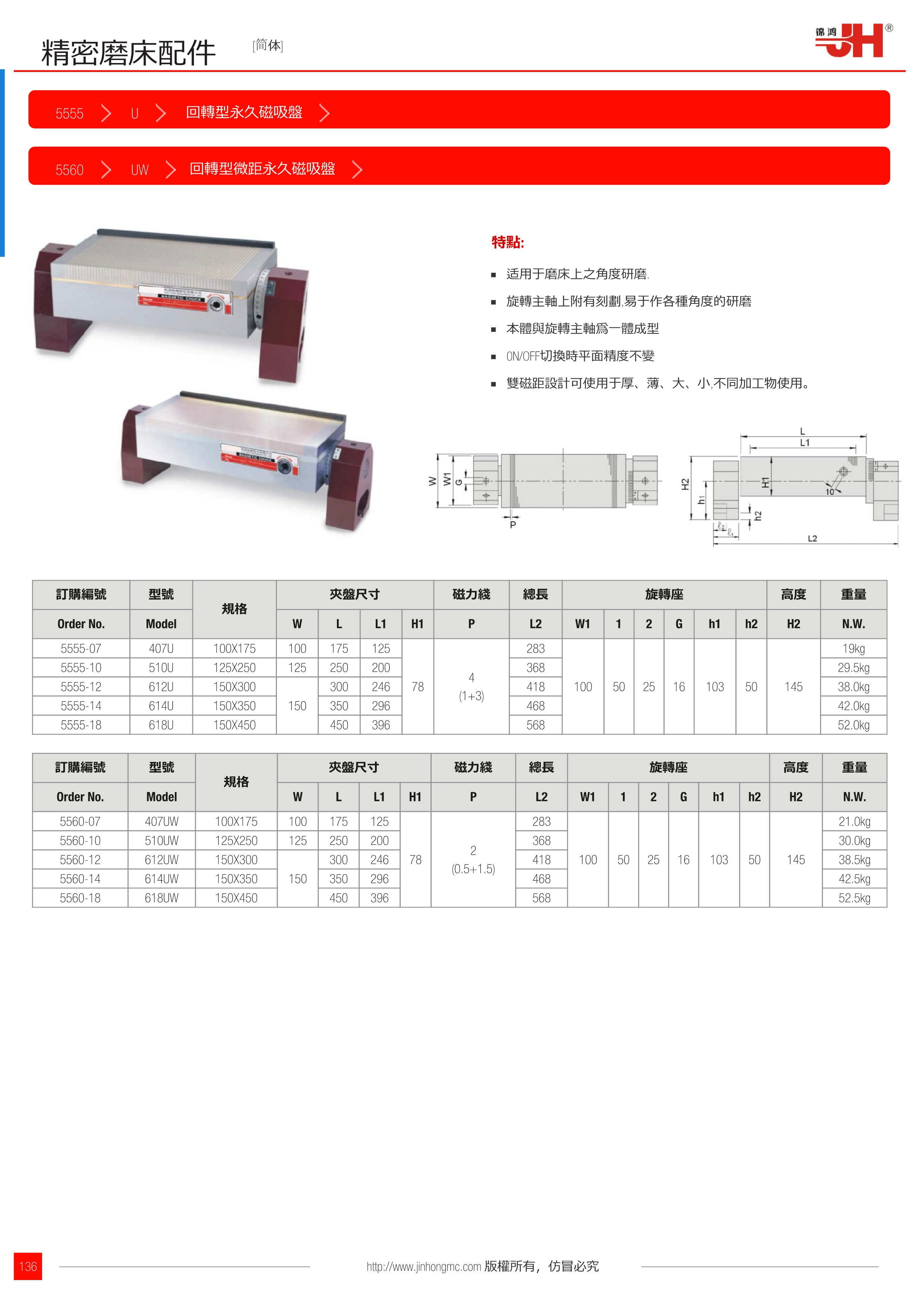 訂購編號 | 型號 | 規(guī)格 | 夾盤尺寸 | 磁力綫 | 總長 | 旋轉(zhuǎn)座 | 高度 | 重量 | ||||||||