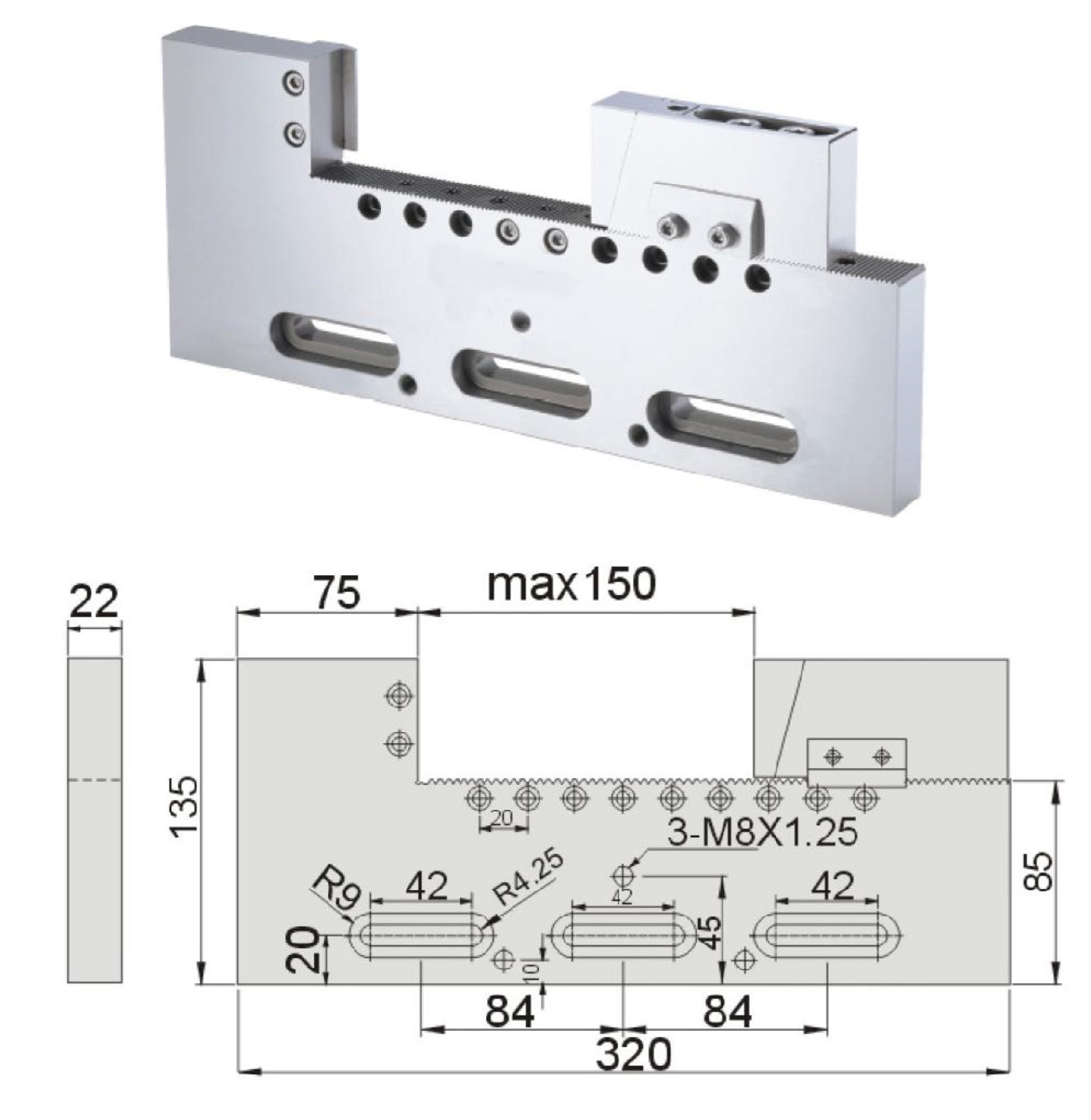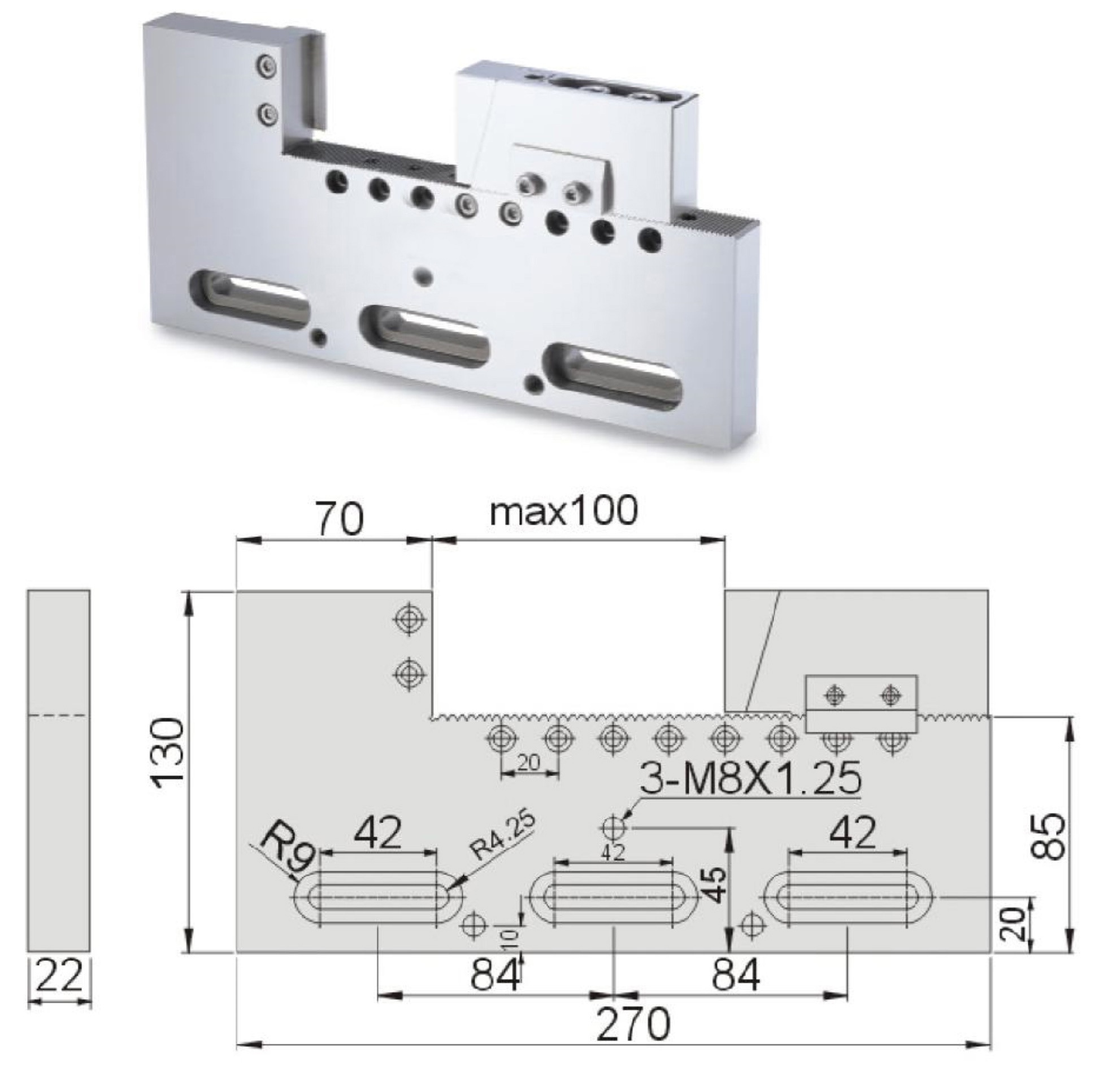 鉗口采用45度下鎖構(gòu)造,不會出現(xiàn)工件上浮的現(xiàn)象。