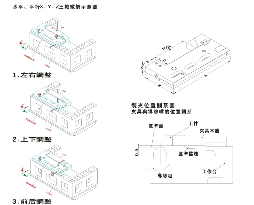 本體具有水平、 平行X、 Y、 Z三軸微調(diào)功能。