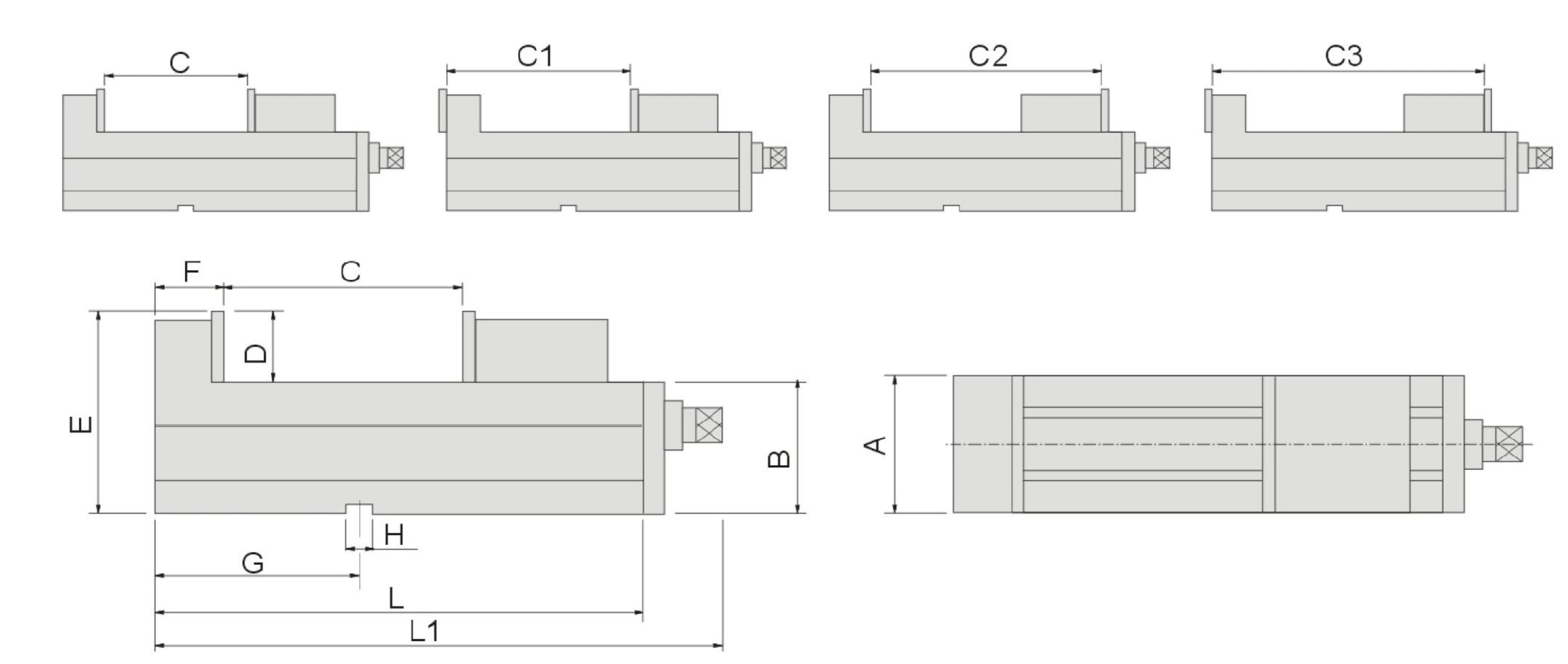 角固式精密機械虎鉗適合立臥式使用,也可多個并列使用。