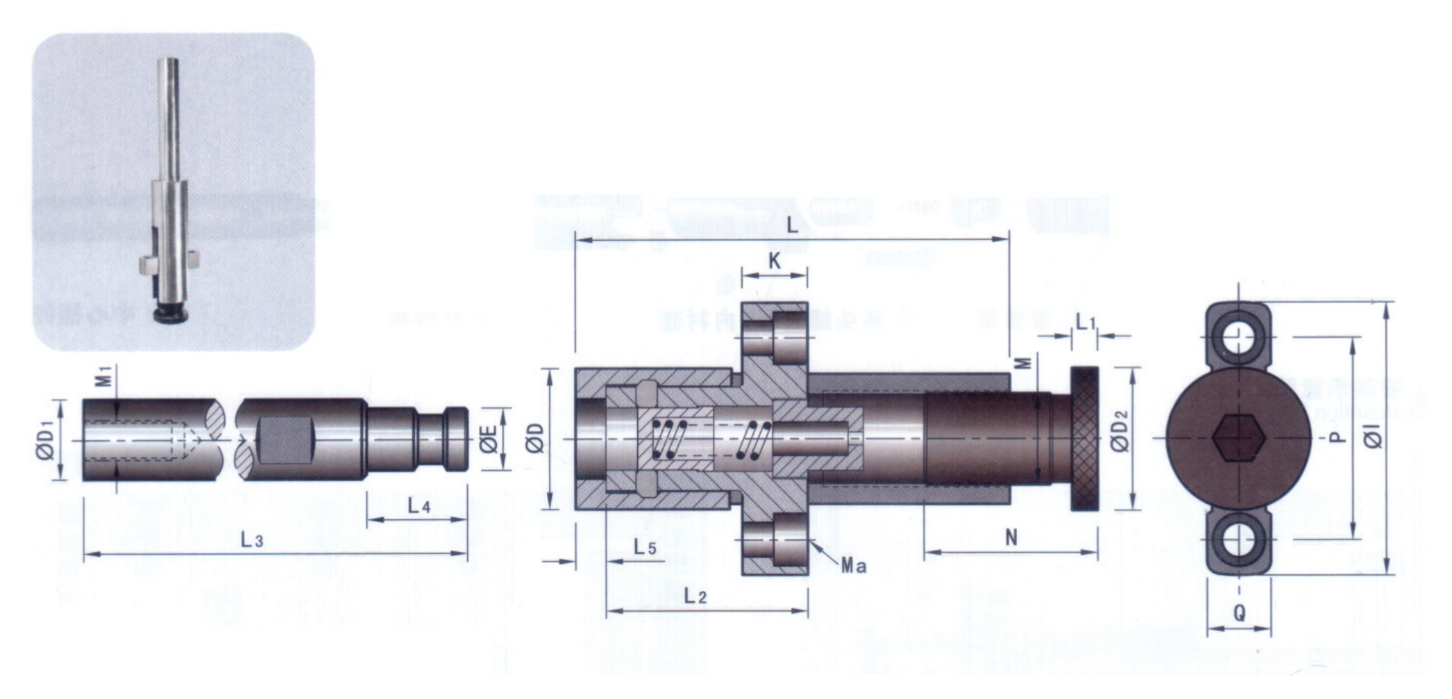 三種直徑尺寸可選,28、34、45MM,根據(jù)模胚的尺寸選擇,三種型號都有兩個(gè)行程范圍及中心桿長度可供選擇;