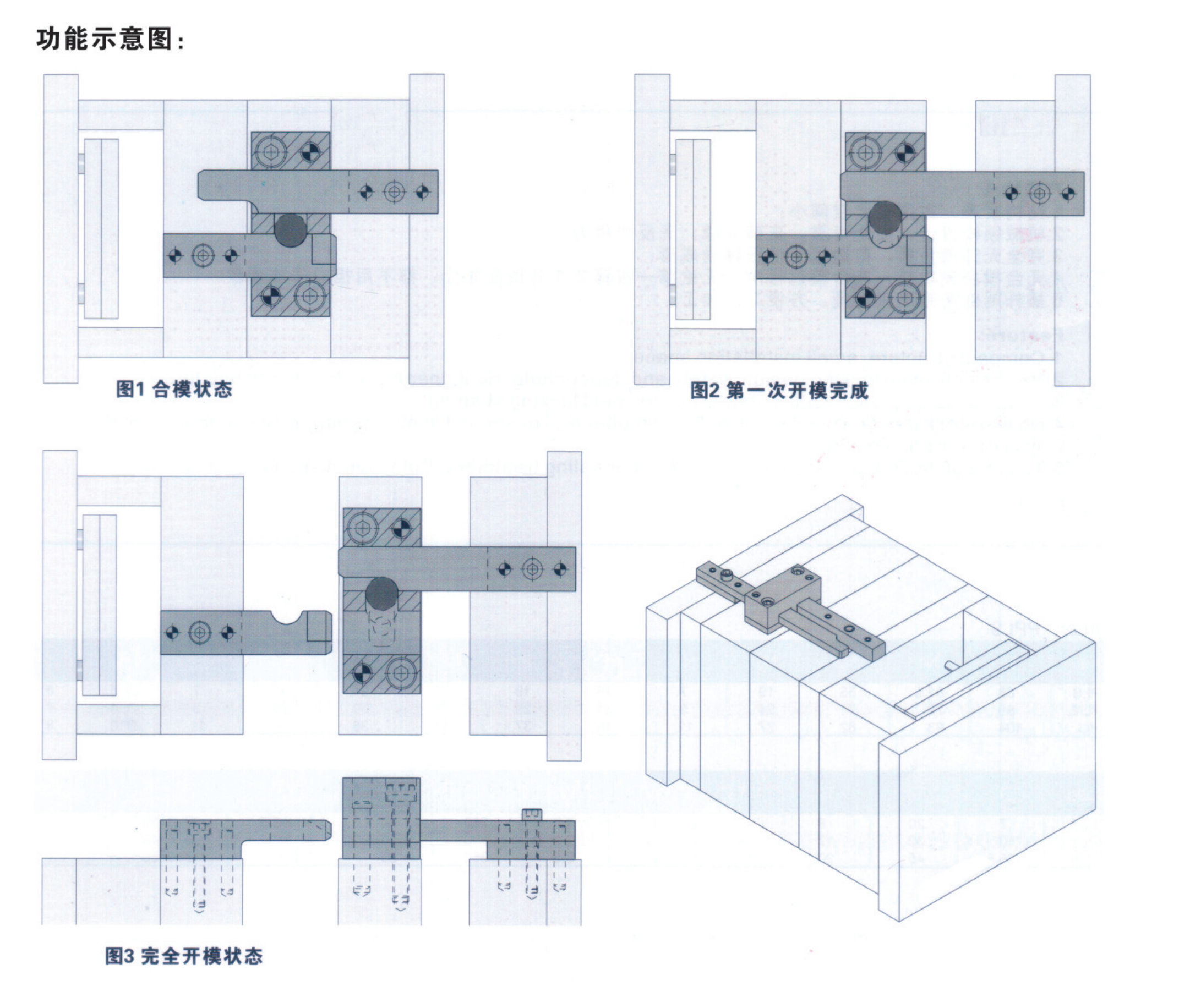 安裝插桿,將插桿與墊塊截成所需要長度,以實物為準配做螺孔及銷釘并垂直于分 型面安裝,(注意:保證安裝幾套鎖??坶_模行程一致,避免受力不平衡而損壞鎖 ??郏?/p>