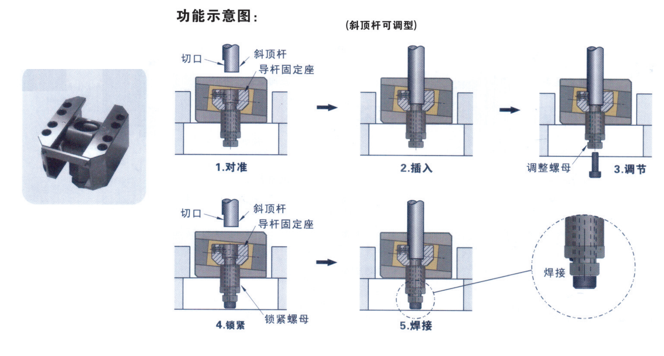 2.將斜頂稈插入導(dǎo)桿固定座并確保位置;