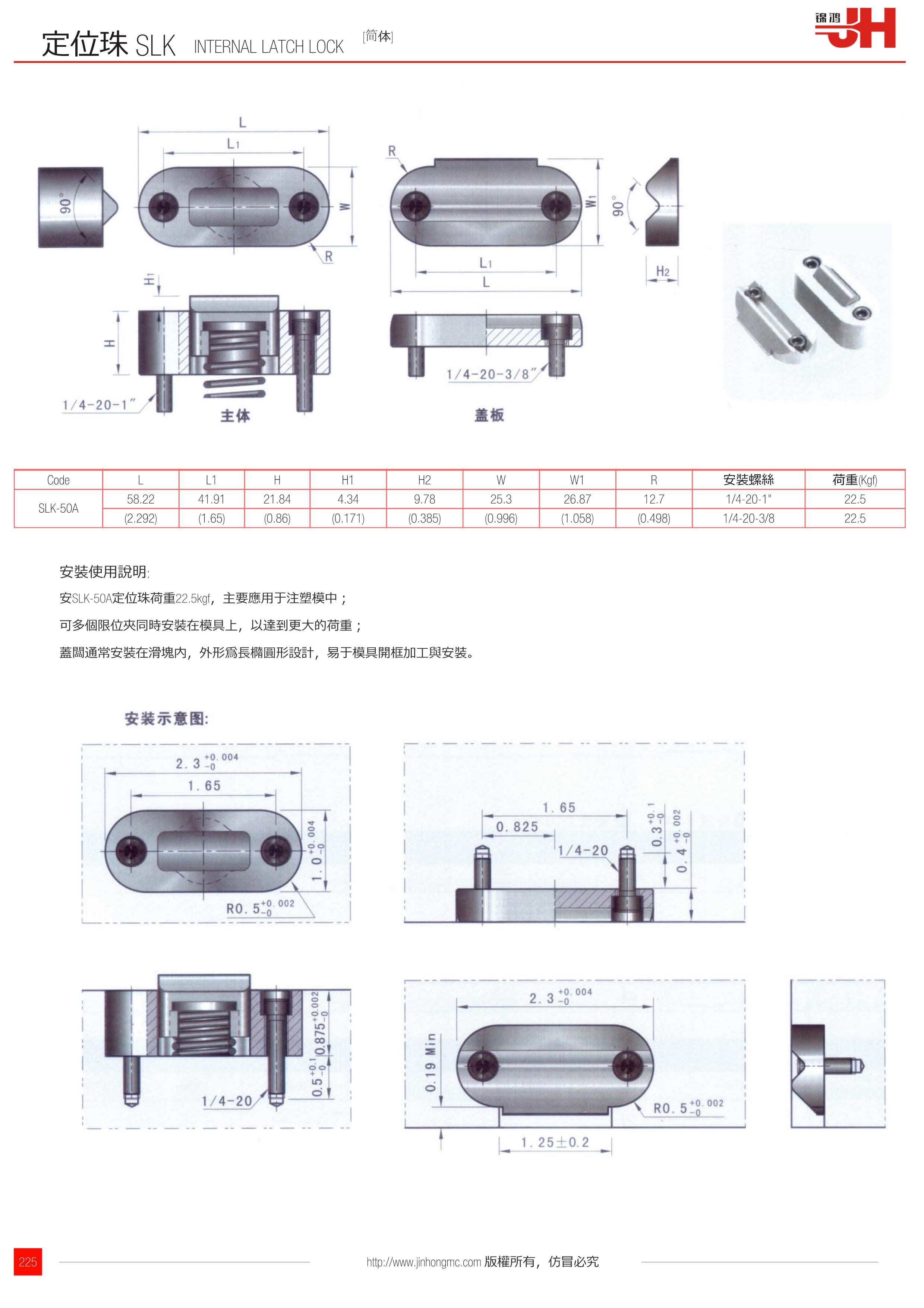 安SLK-50A定位珠荷重22.5kgf,主要應(yīng)用于注塑模中;
