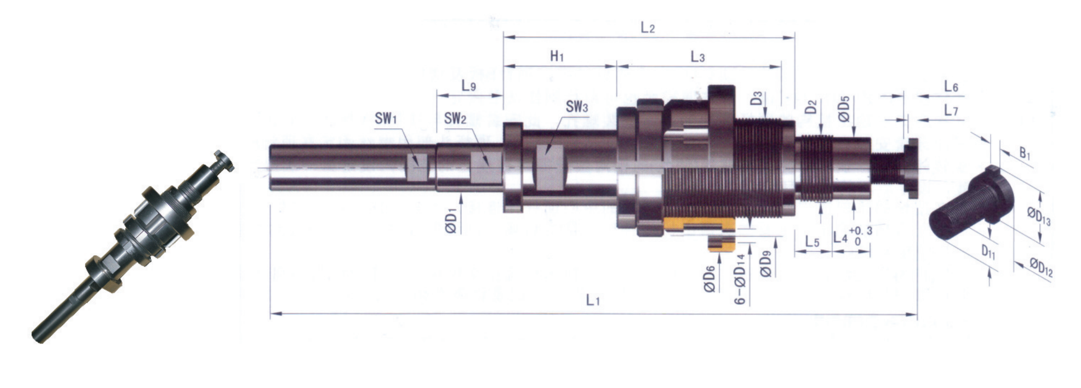 旋轉(zhuǎn)外牙套,調(diào)節(jié)外牙套與法蘭的相對位置即可在規(guī)定的范圍內(nèi)設(shè)定第一次頂出行程 “S1”的位置,設(shè)定后再將法蘭鎖緊;