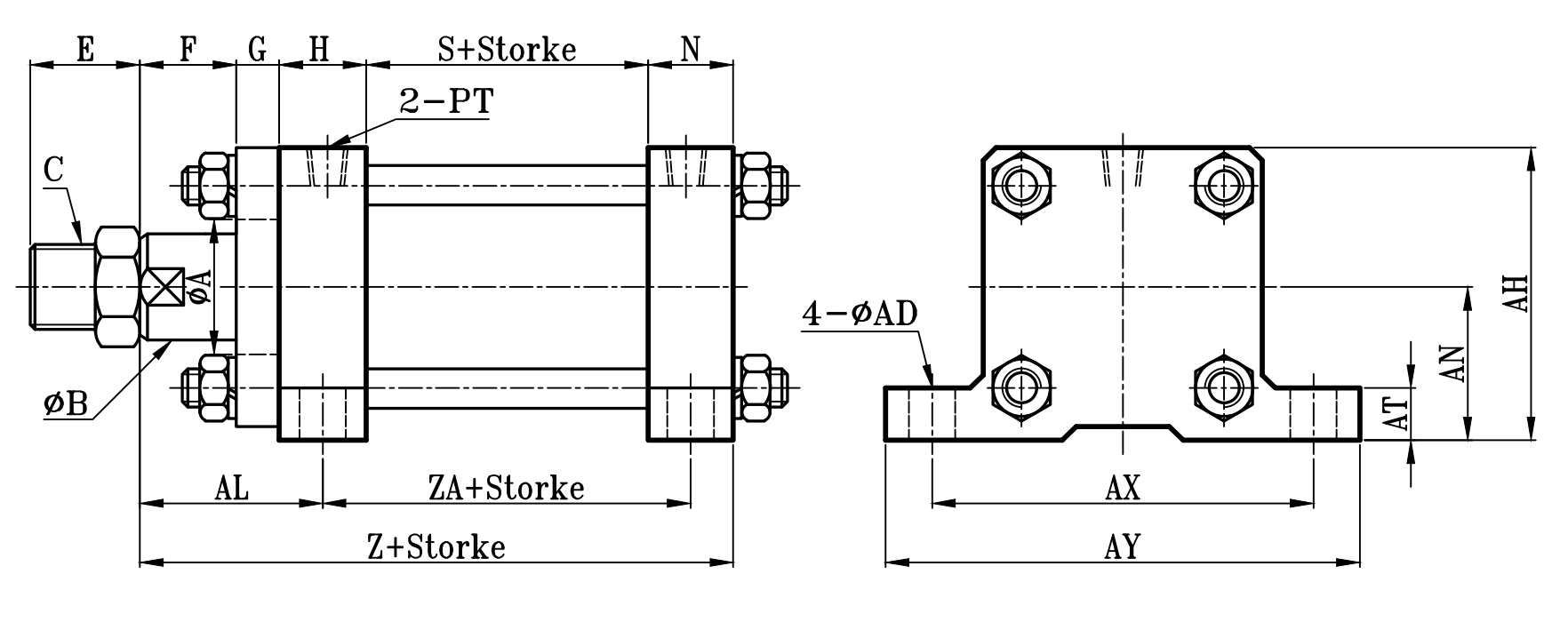 缸徑 BORE | ΦA(chǔ) | ΦB | C | E | F | G | H | N | PT | S | AL | ZA | ZAD | Z | ΦA(chǔ)D | AT | AH | AN | AX | AY |