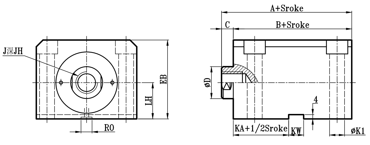 缸徑 BORE | A | B | C | ΦD | E | F | EA | FA | EB | LH | Q | FB | ΦK | ΦK1 | KA | KW | ΦM | H | S | RO | Y | X | J | JH | O | OL | W | ΦV |