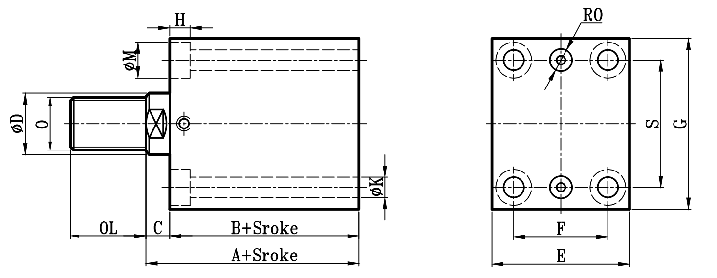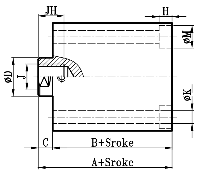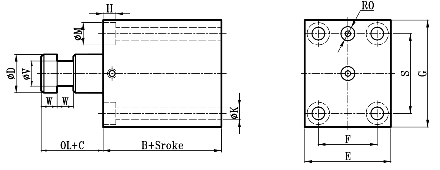 缸徑 BORE | A | B | C | ΦD | E | F | S | G | ΦK | ΦM | H | RO | J | JH | O | OL | W | ΦV |