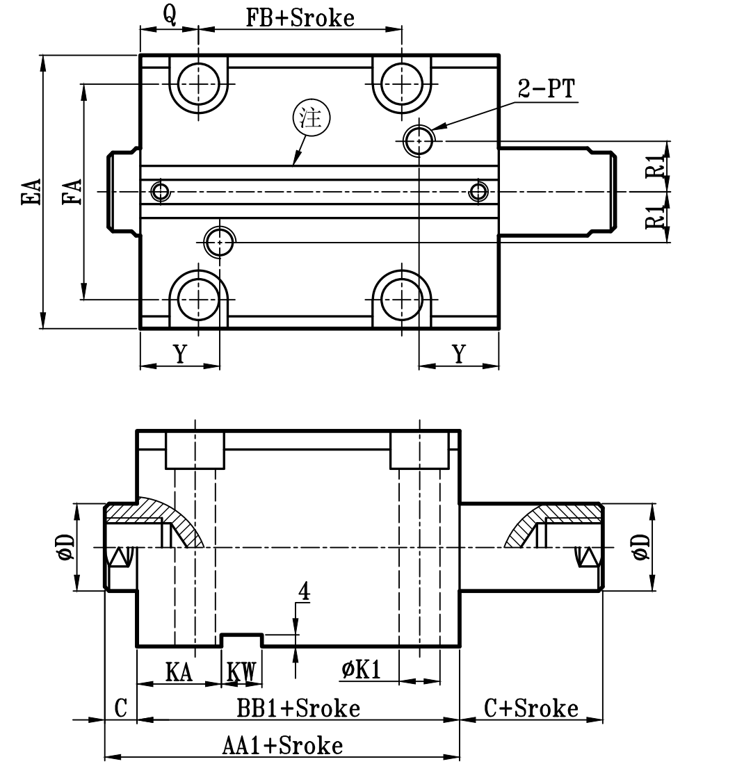 缸徑 BORE | AA1 | BB1 | C | ΦD | EA | FA | EB | LH | Q | FB | ΦK1 | KA | R1 | KW | E | F | ΦK | ΦM | H | R | Y | PT | AH | J | JH | 0 | OL | W | ΦV |
