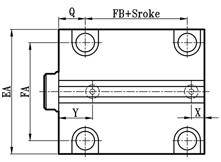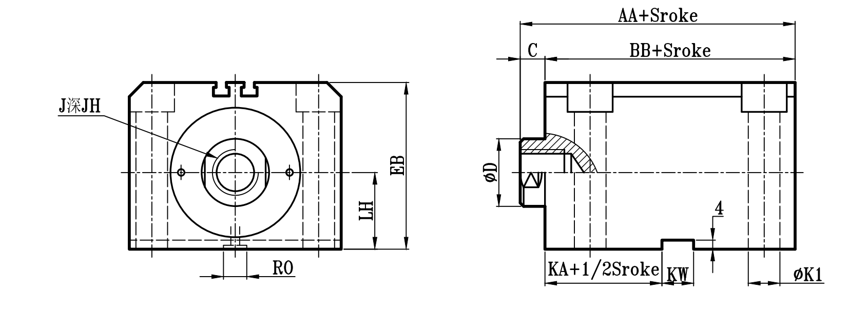 缸徑 BORE | AA | BB | C | ΦD | E | F | EA | FA | EB | LH | Q | FB | ΦK | ΦK1 | KA | KW | ΦM | H | Y | X | S | R0 | J | JH | 0 | OL | W | ΦV |