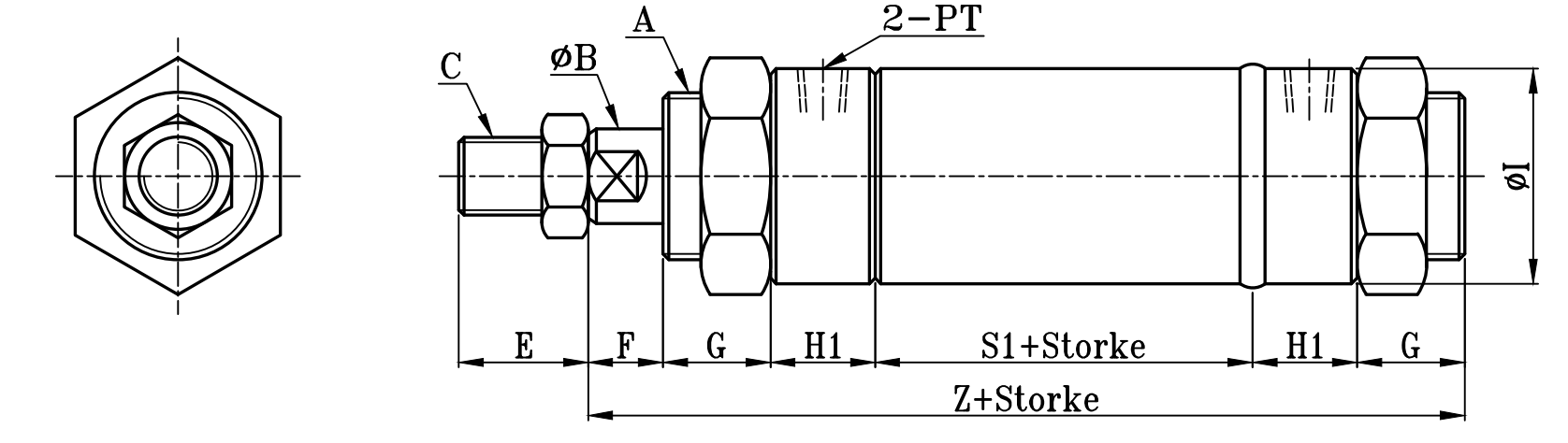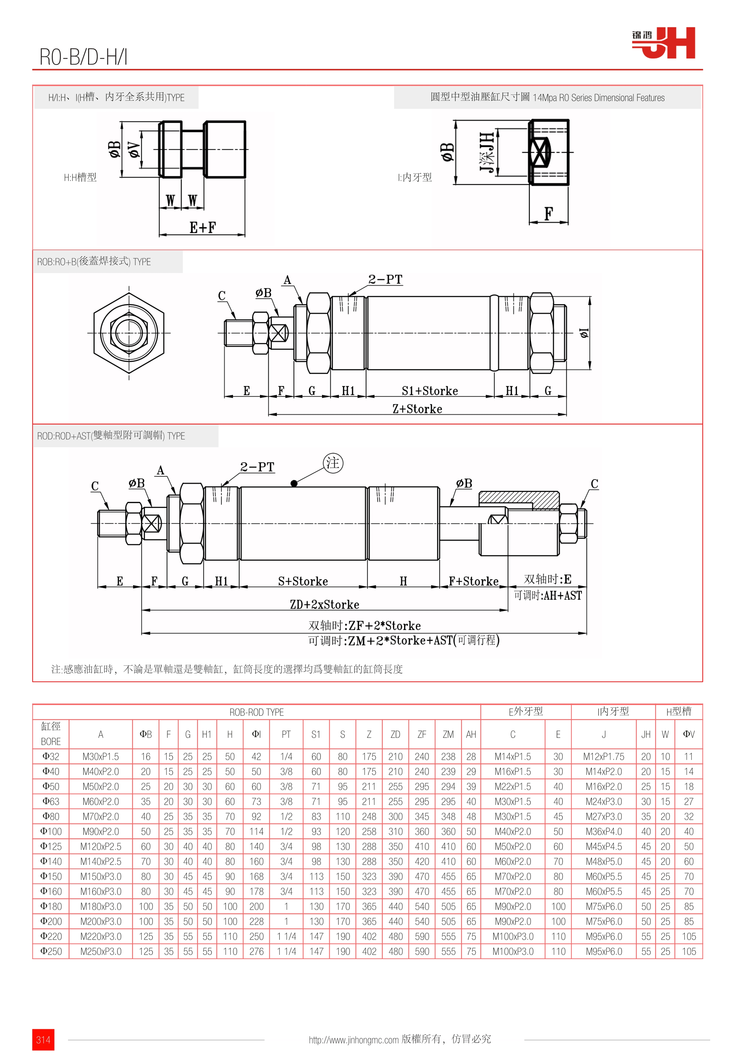 H/I:H、I(H槽、內(nèi)牙全系共用)TYPE | 圓型中型油壓缸尺寸圖 14Mpa R0 Series Dimensional Features |