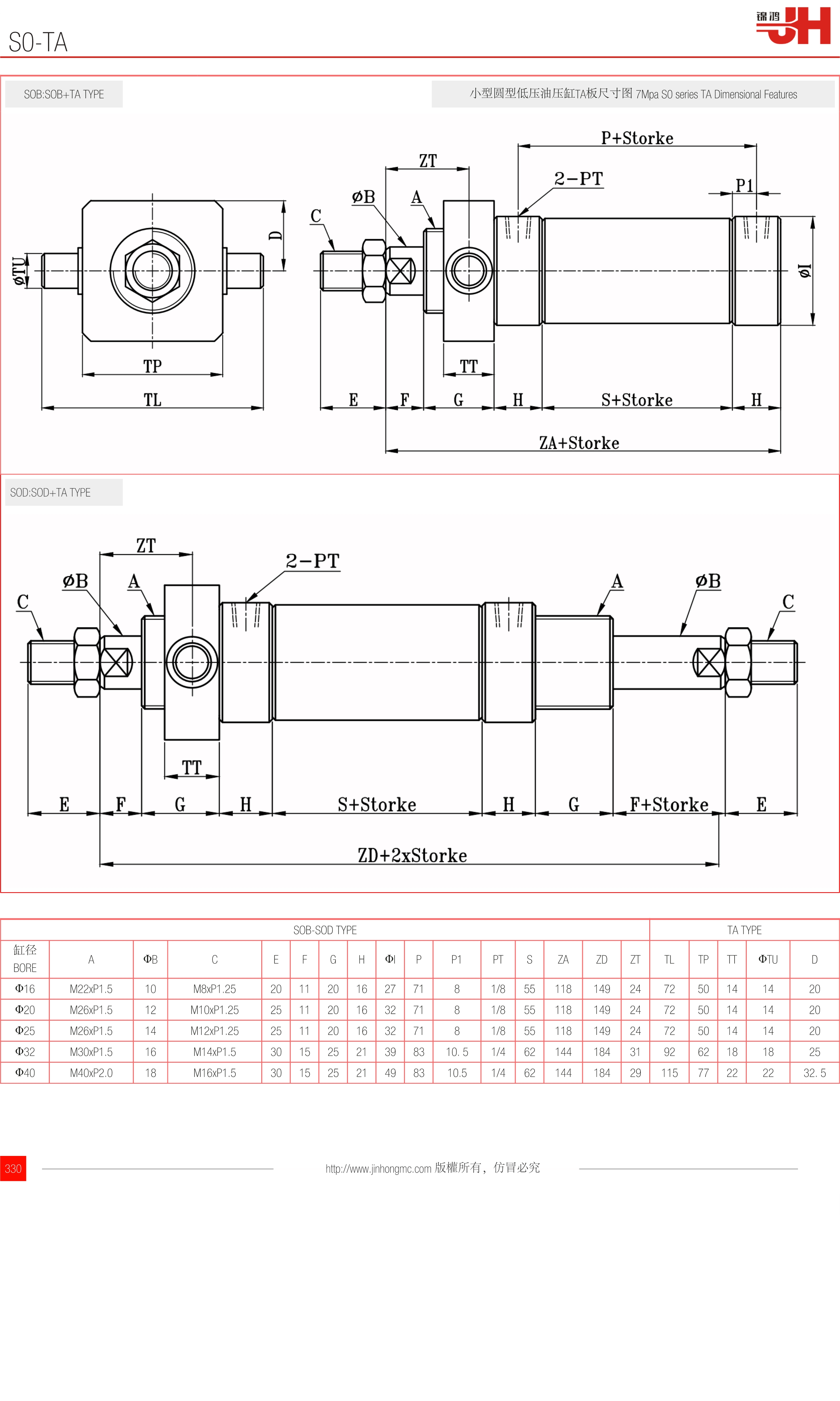 SOB:SOB+TA TYPE | 小型圓型低壓油壓缸TA板尺寸圖 7Mpa S0 series TA Dimensional Features |