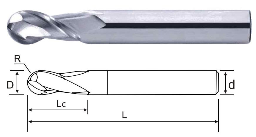 商品編號(hào) Product number | 半徑(R) Radius of R | 刃徑(D) Blade diameter | 刃長(zhǎng)(Lc) Blade length | 柄徑(d) Shank diameter | 全長(zhǎng)(L) Overall length |