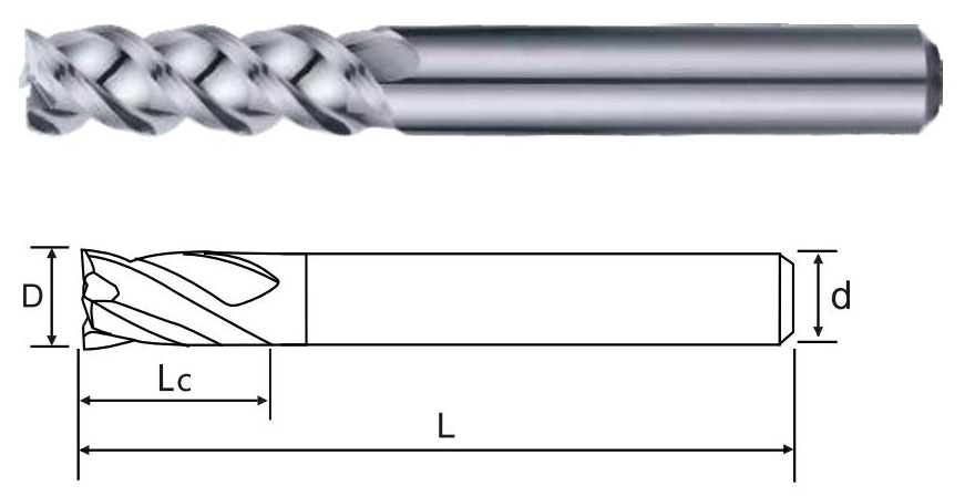 商品編號 Product number | 刃徑(D) Blade diameter | 刃長(Lc) Blade length | 柄徑(d) Shank diameter | 全長(L) Overall length | 刃數(shù) Flute |
